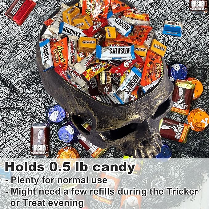 - 【HOLDS 50+ CANDIES】Deep skull bowl fits over 50 wrapped treats.