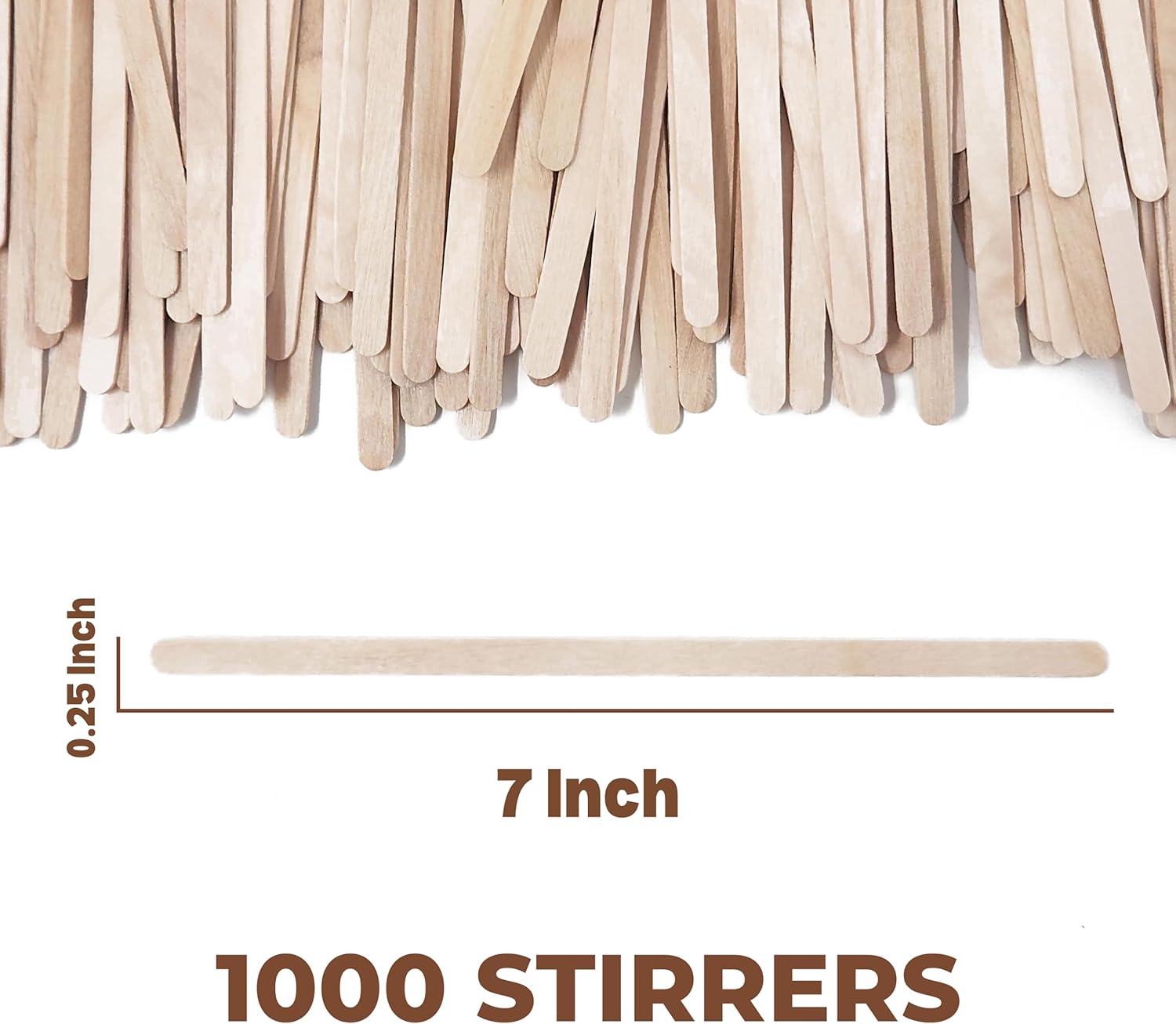 - Smooth Wooden Stir. These coffee stir sticks boast smooth surfaces and are free from splinters. Each stirrer measures 7 inches in length and ¼ inch in width, featuring rounded ends for safe and comfortable stirring. Each box contains 1000 stirrers, providing ample supply for all your coffee needs. The convenient storage box ensures easy access and organization, making it ideal for busy office breakrooms or home coffee stations.