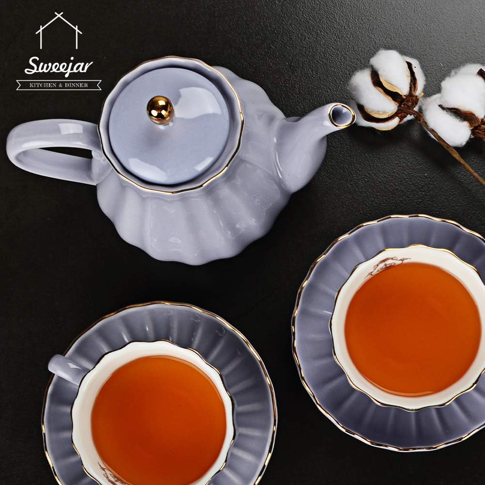 Sweejar Royal Teapot, Ceramic Tea Pot with Removable Stainless Steel Infuser, Blooming & Loose Leaf Teapot - 28 Ounce(Purple)