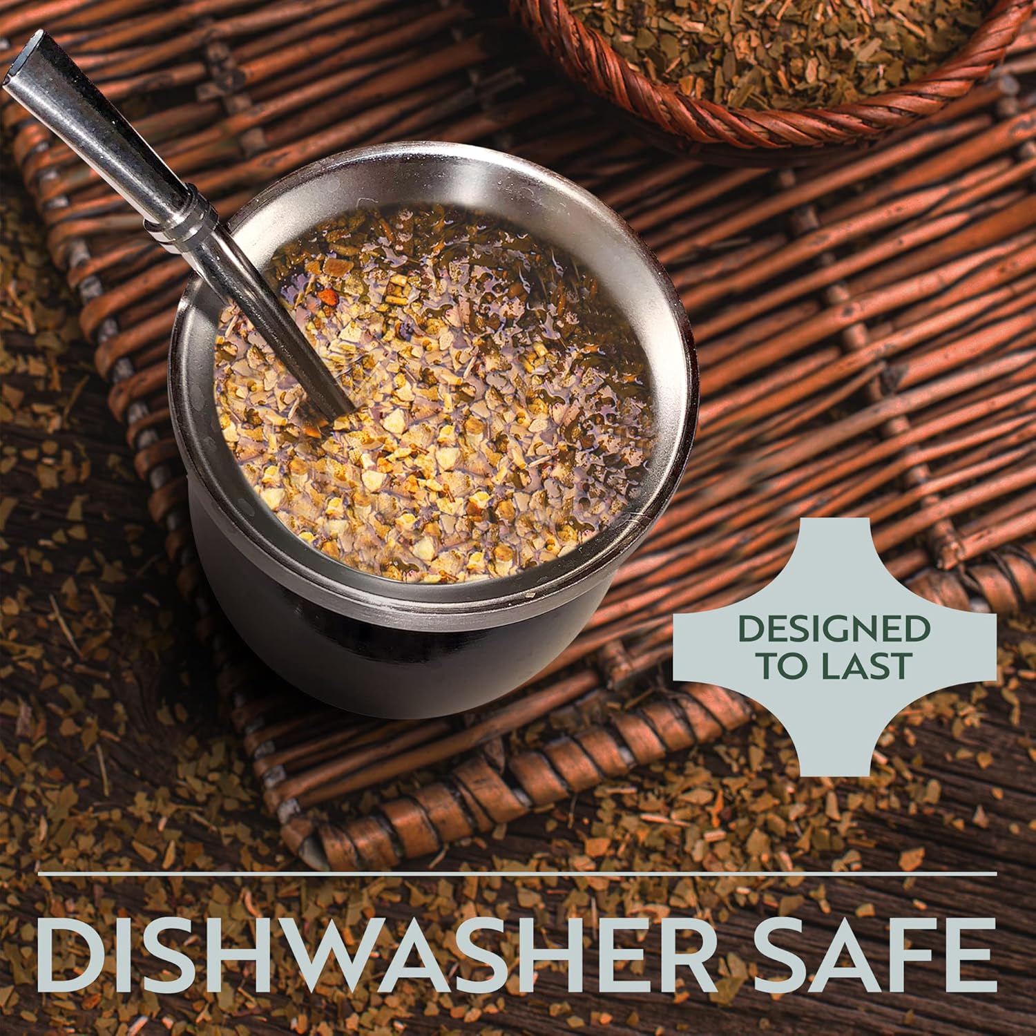 - High- Quality & Elegant Design: Each stainless steel yerba mate cup set includes 1 elegant, clog-resistant bombilla (straw), 1 flat bombilla, and 1 cleaning brush. BPA-free and designed for daily use, this yerba mate insulated cup is perfect for seasoned drinkers or as a thoughtful gift for anyone exploring yerba mate tea.