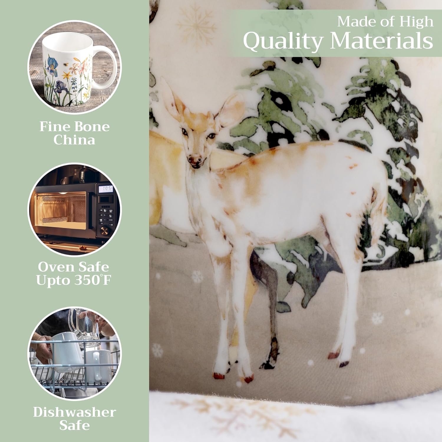 Maison d' Hermine Coffee Mug with Handles Fine Bone China Mugs Pack of One Tea Cups for Hot Beverages Cappuccino Latte Home Office Perfect for Gift (Deer In The Woods - Forest Deer, 12 Ounce)