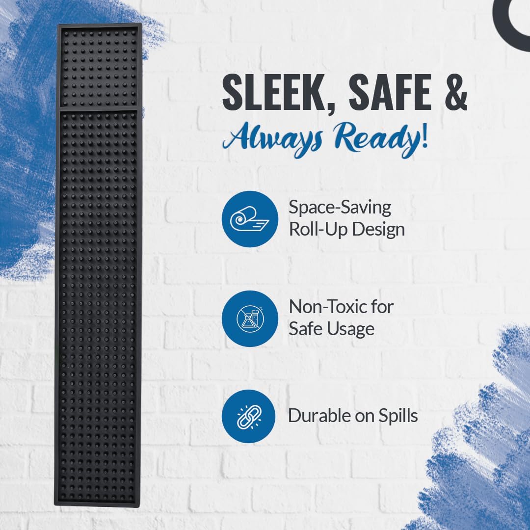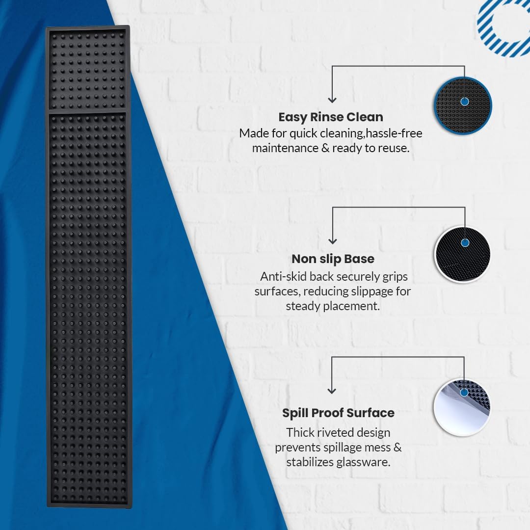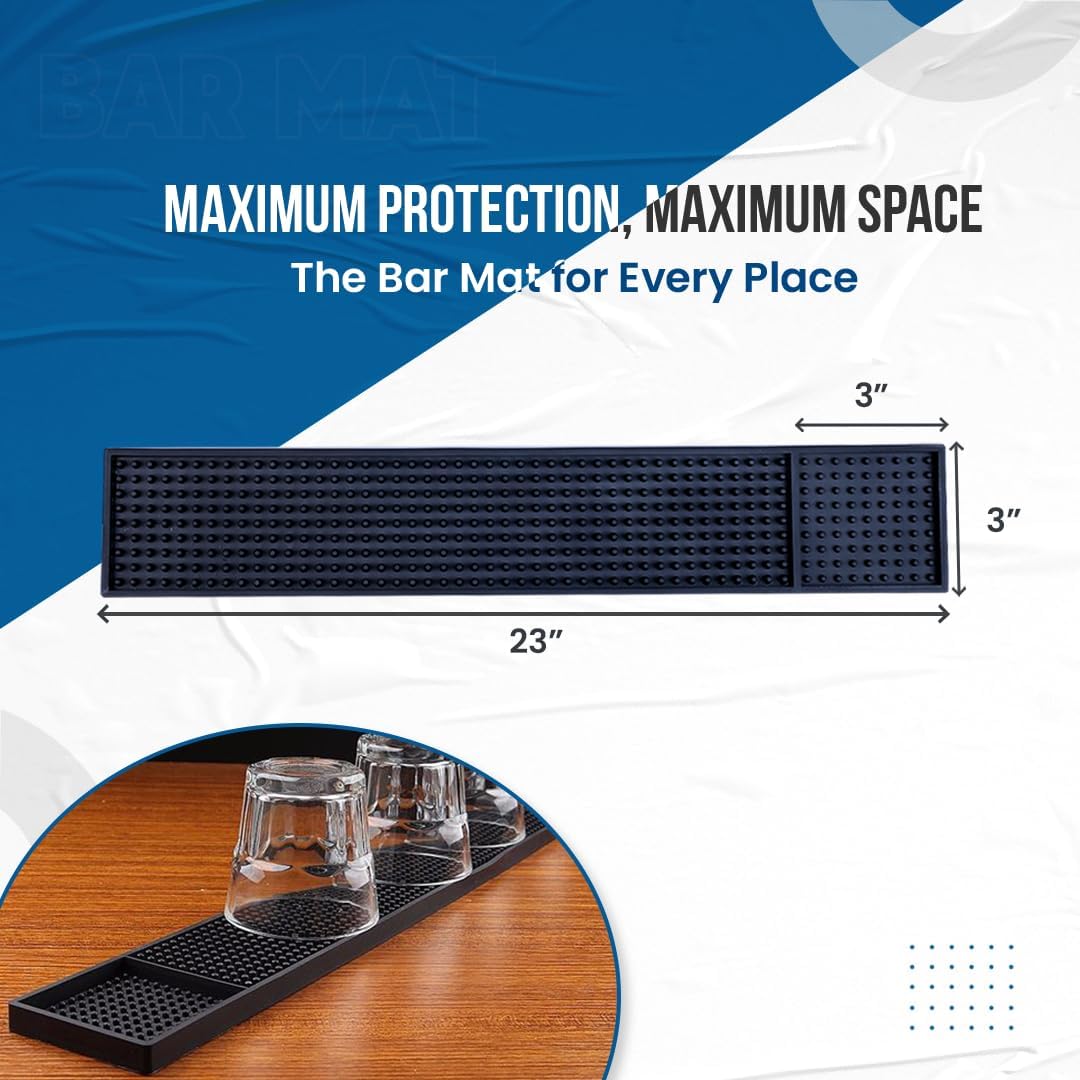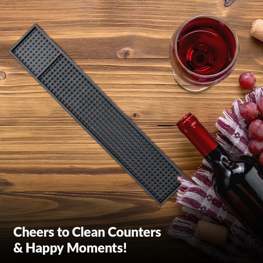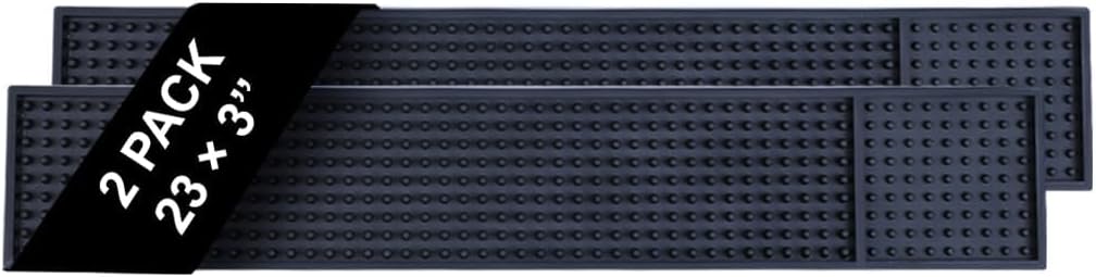 - Ideal Counter Companion : Our Bar mat for home bar is the best counter buddy measuring 23" x 3.25" (pack of 2) a value right to your doorstep & the black hue that fits the decor with bar mats for home bar