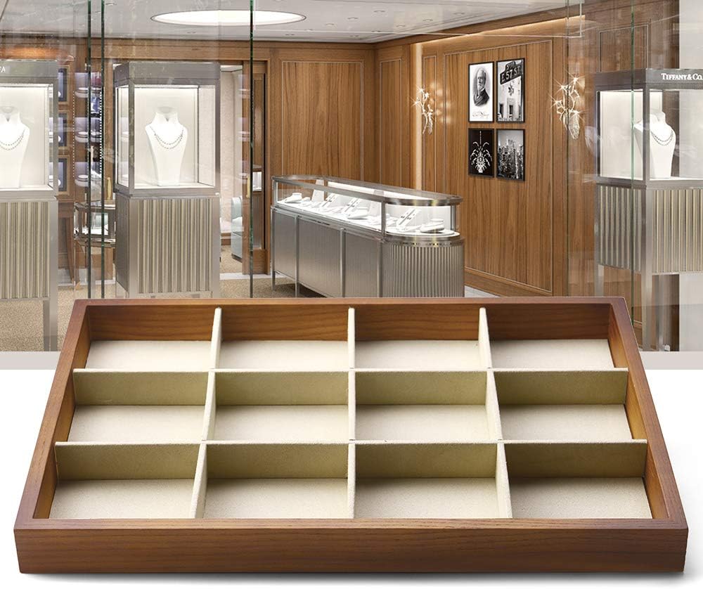 Oirlv 12 Grids Wood Jewelry Organizer Tray Stackable Jewelry Drawer Tray Bracelet/Watch Showcase Display Storage(Creamy-white)