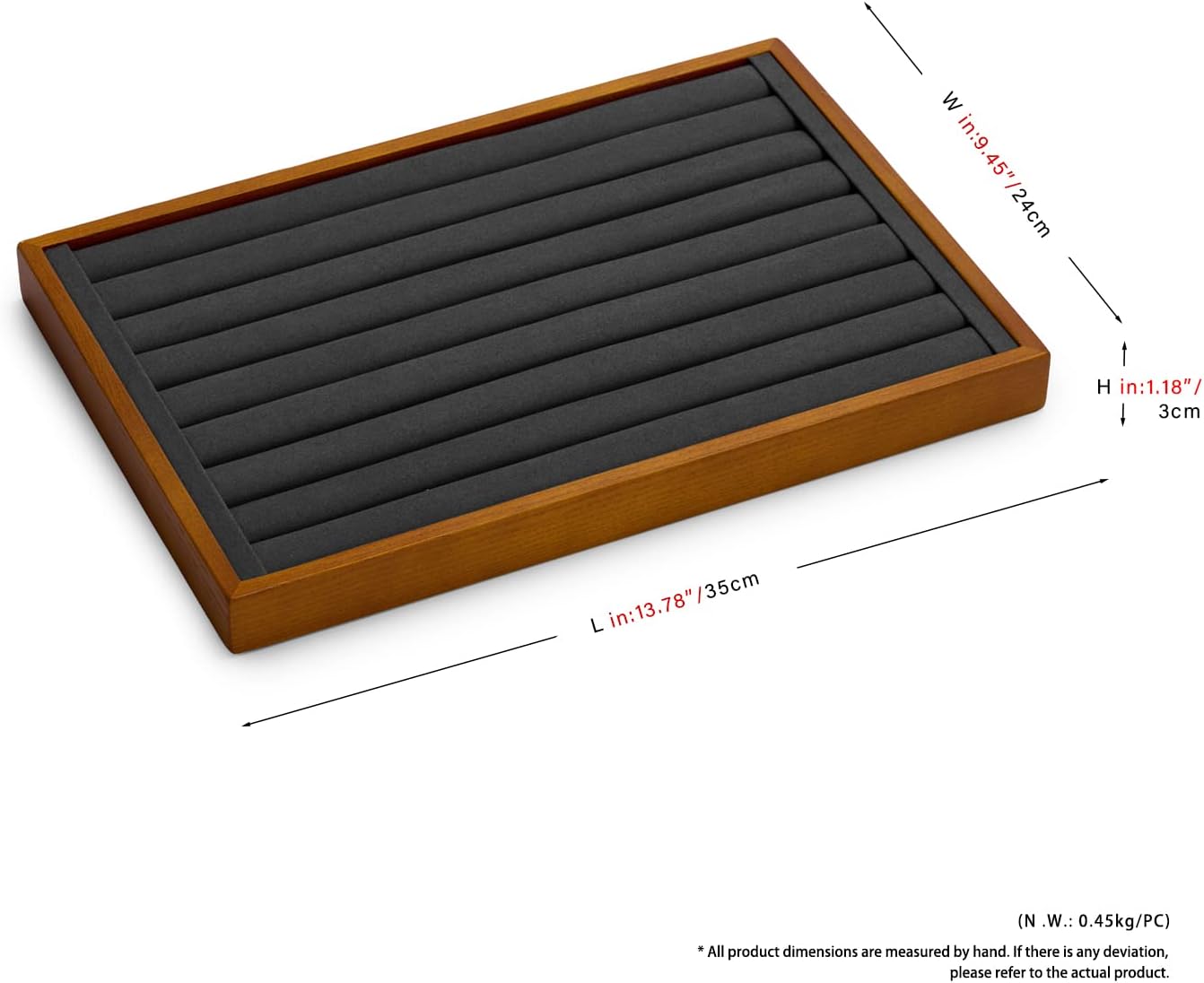 - ★8 Line wood jewelry tray dimension:13.78" x 9.45" x 1.18"/35 x 24 x 3CM(L x W x H),divided into 8 ring lines.Pack of 1,jewelry not include.