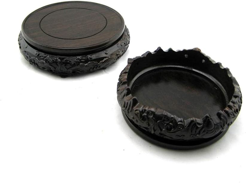 GOLDY&WENDY Oriental Luxury Round Elm Solid Wood Vase Display Stands Pedestal Base, Bat Pattern 3.15 in Diameter
