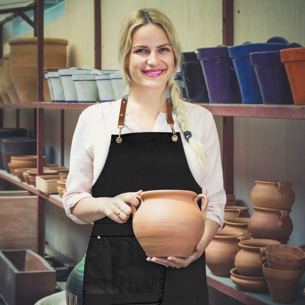 - Unique split apron design,it's very convenient when you take a seat and making ceramics,painting etc.This apron is a good choice for home, kitchen, restaurant, salon, cosmetology, coffee shop, flower shop, bar, bistro, farmhouse, garden, etc