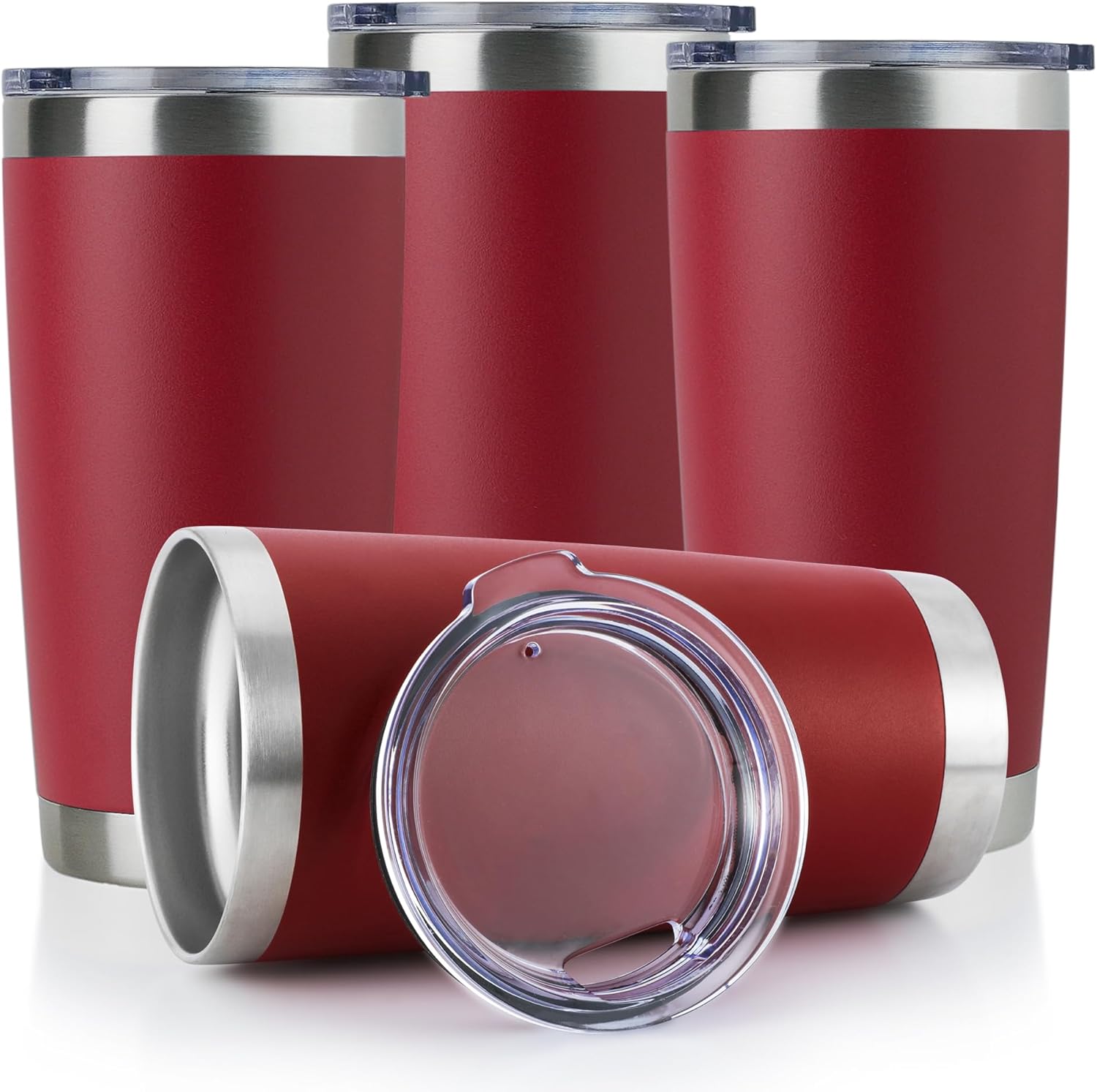 DOMICARE 20oz Stainless Steel Tumbler Bulk with Lid, Double Wall Vacuum Insulated Travel Mug, Powder Coated Coffee Cup (Powder Red, 4)