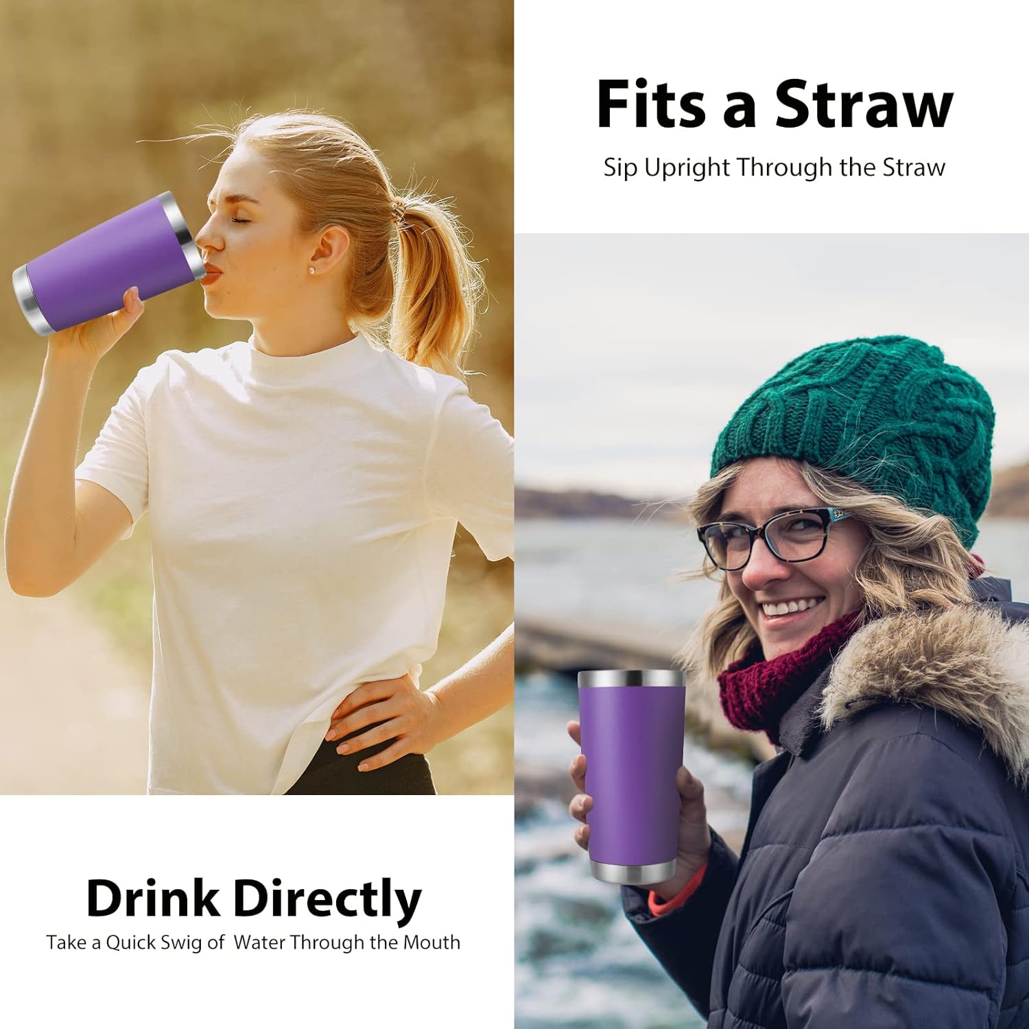DOMICARE 20oz Stainless Steel Tumbler Bulk with Lid, Double Wall Vacuum Insulated Travel Mug, Powder Coated Coffee Cup (Powder Purple, 4)