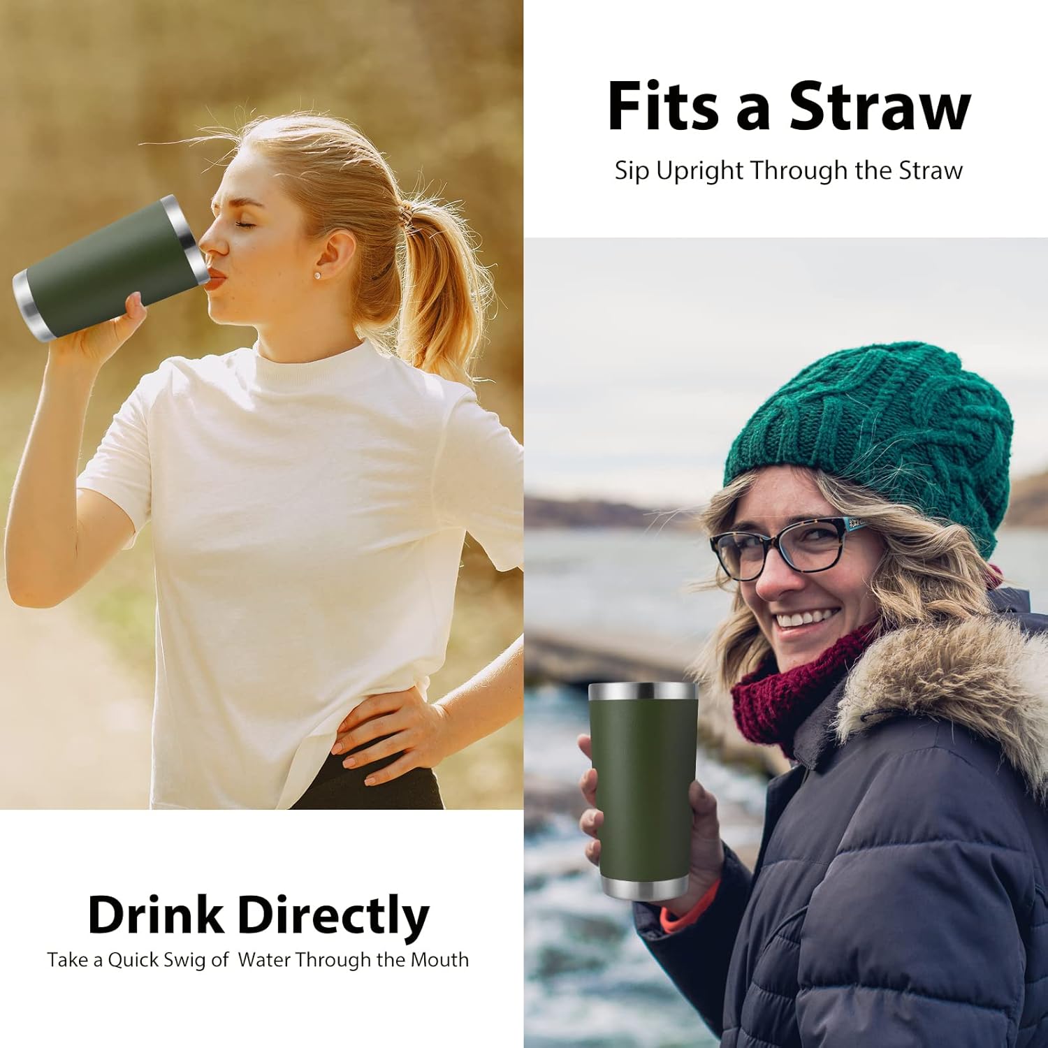 DOMICARE 20oz Stainless Steel Tumbler Bulk with Lid, Double Wall Vacuum Insulated Travel Mug, Powder Coated Coffee Cup, Army Green, 1 Pack