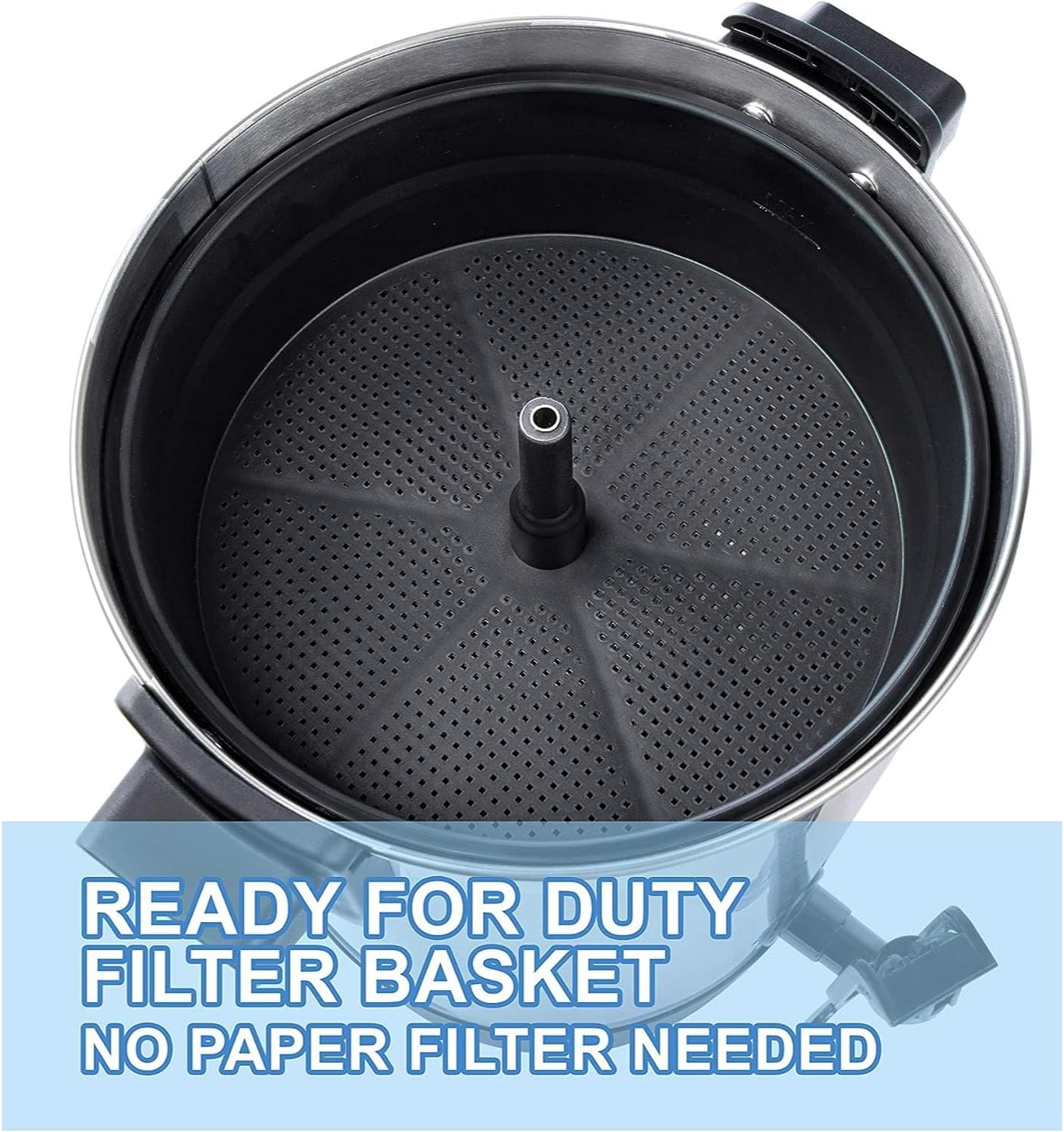 - ✪ Easy TO FILL-- Coffee level markings in the urn’s interior make measuring water A snap. And easy for you to know when it is time for another refill. ✪ NO PAPER FILTER NEEDED--The duty filter basket is durable and easy to clean, no paper filter needed.