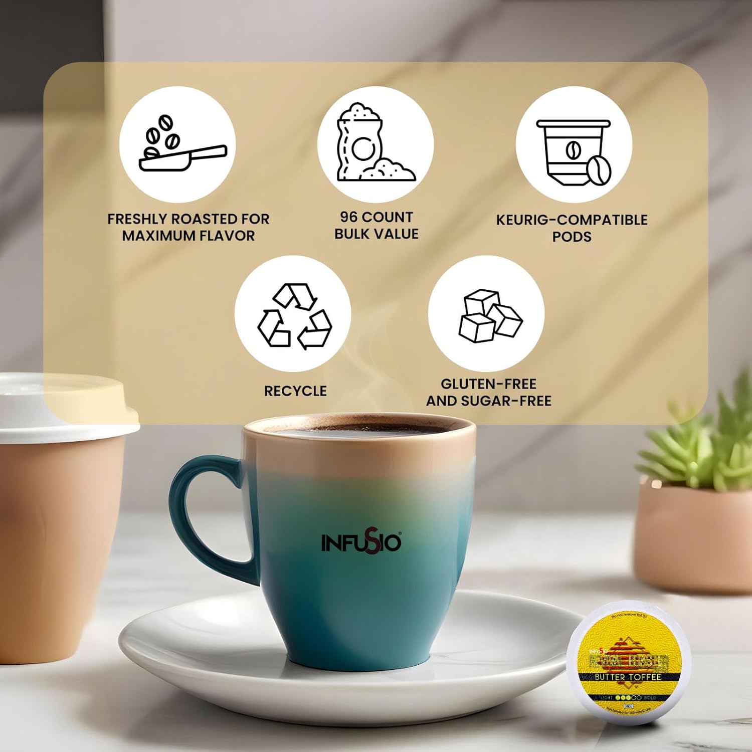 InfuSio Butter Toffee Coffee Pods, Single Serve Coffee Pods for Keurig K Cups Brewers - Premium Roasted 96 Count