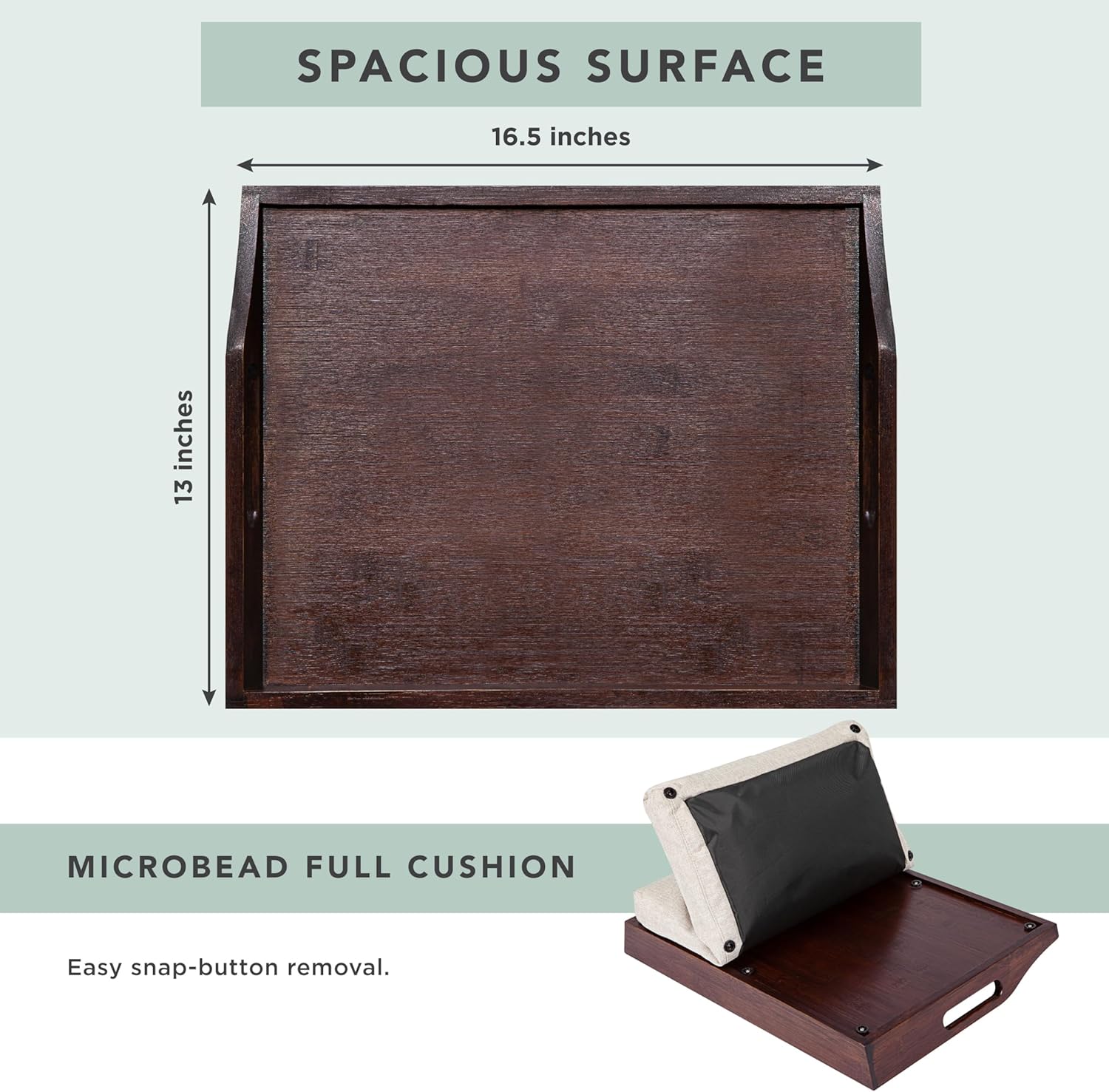 ROSSIE HOME Bamboo Wood Bed Tray, Lap Desk with Detachable Cushion, Serving Tray - Java - Fits up to 15.6 Inch Laptops - Style No. 76102