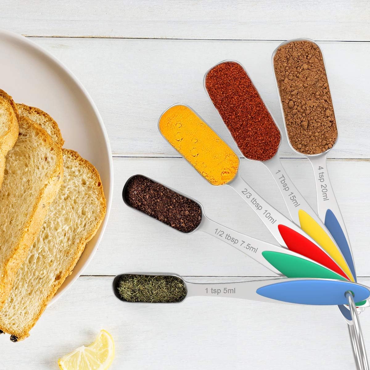 - CONVENIENT TO USE: The rectangular design of the measuring spoon is slim and narrow to fit into spice jars. You won't need to shake spices onto the spoon so you will save more and waste less of your spices and also make your kitchen clean and neat. The leveler is designed for removing excess amount of ingredients, so that you can cook more accurately and hygienic, and the whisk is great for mixing