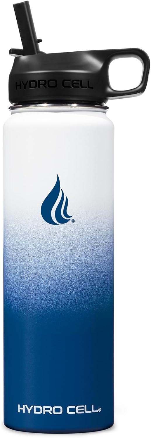 HYDRO CELL Stainless Steel Insulated Water Bottle with Straw - For Cold & Hot Drinks - Metal Vacuum Flask with Screw Cap and Modern Leakproof Sport Thermos for Adults (Navy/White 24oz)