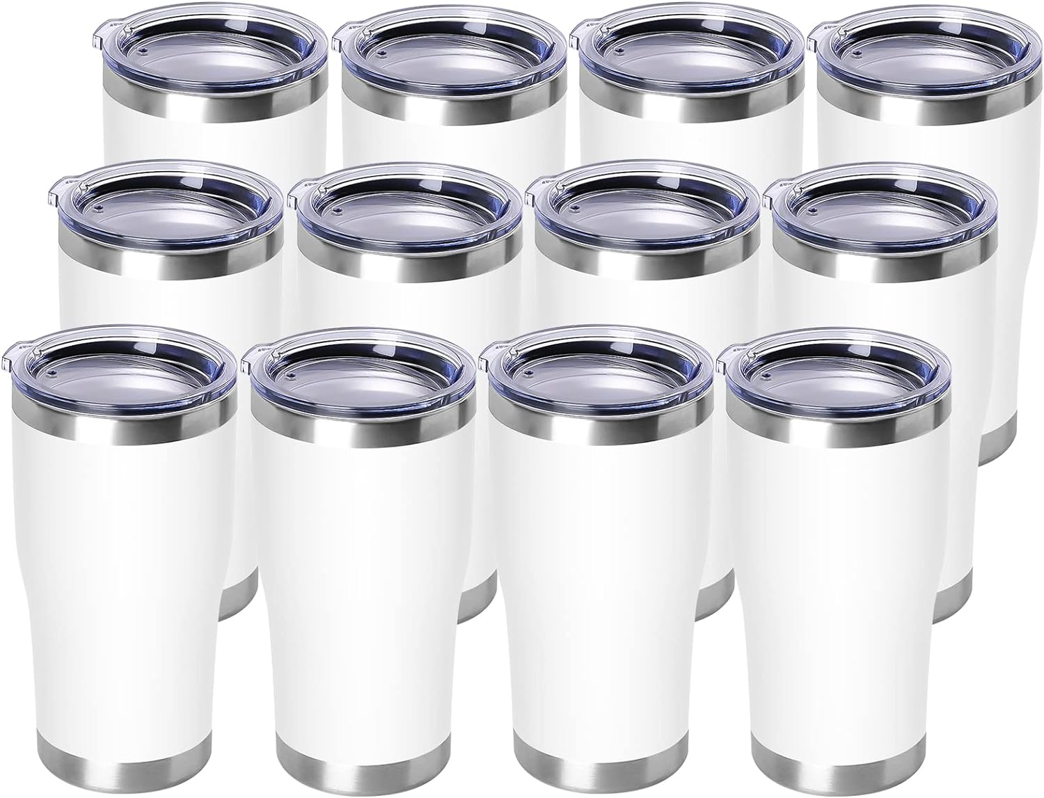 DOMICARE 20oz Tumbler with Lid Stainless Steel Tumblers Bulk, Double Wall Vacuum Insulated Coffee Travel Mug Powder Coated Tumbler, 12 Pack White