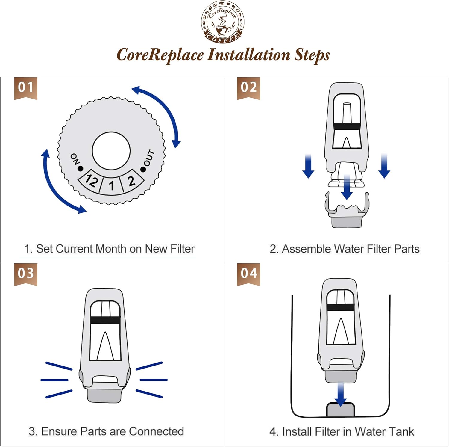 - More Mellow and Delicious Experience: This Replacement Water Filter can significantly reduce chlorine, odor, and other impurities so that you will be able to reproduce all the aroma and flavor of the coffee shop in your comfortable home.