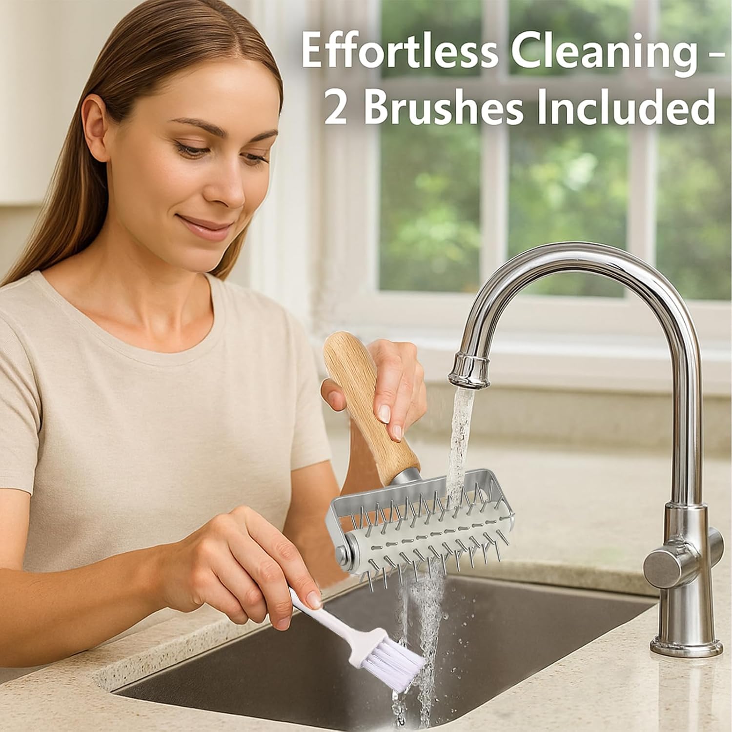 - Premium Material: Our dough docker roller with a solid wood handle. Pins are made of Food Grade stainless steel material. Sturdy and durable dough docker will last longer
