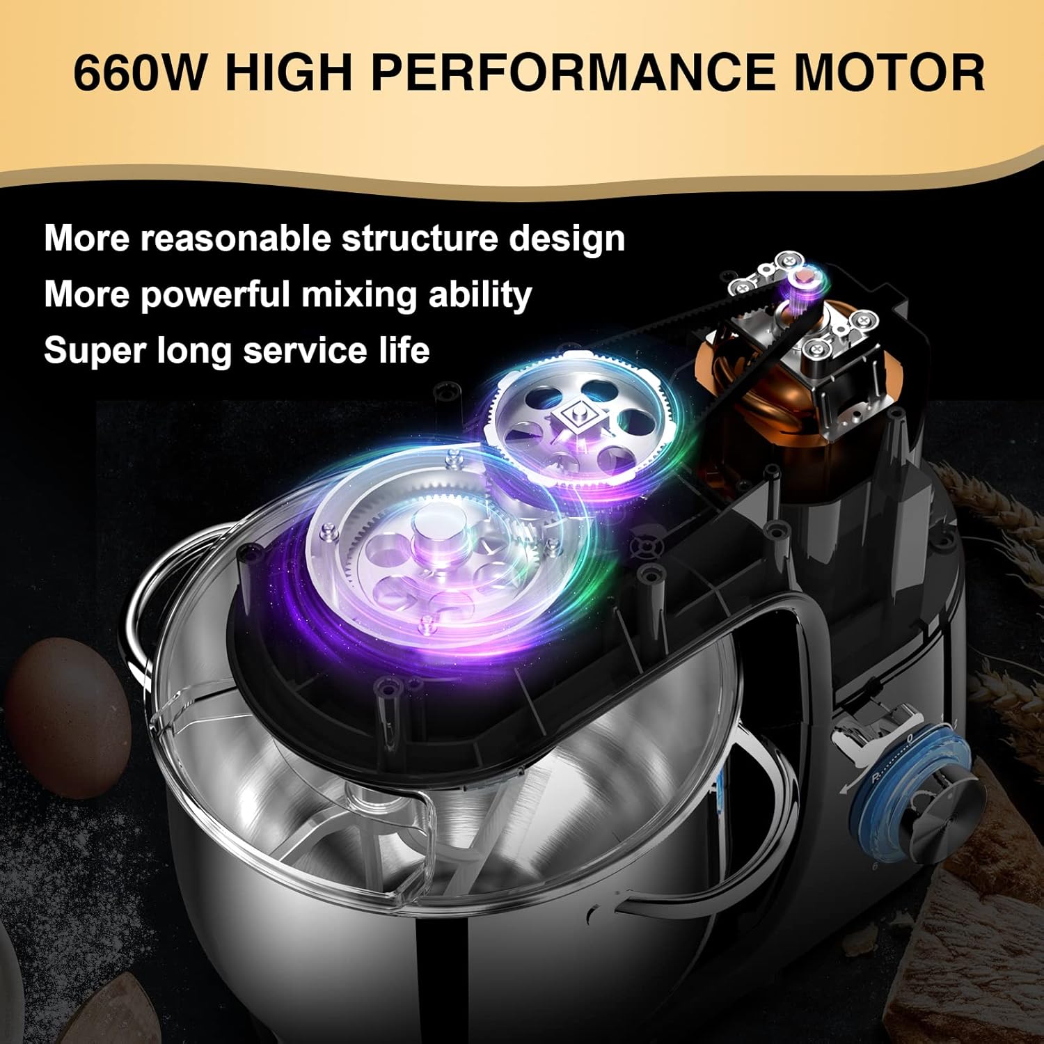 Stand Mixer, 9.5 Qt 660W, 6-Speed Tilt-Head Food Dough Mixer, Electric Kitchen Mixer with Dough Hook, Flat Beater & Wire Whisk, Mixing Bowl (9.5-QT, Black)