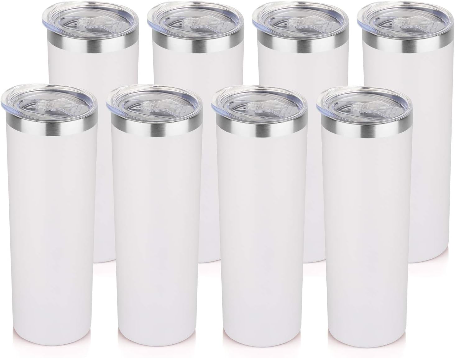HASLE OUTFITTERS 20 oz Skinny Tumblers Bulk Set, Stainless Steel Insulated Slim Tumblers with Lids, Reusable Double Wall Travel Coffee Mugs, Durable Powder Coated Travel Water Cups(White, 8)