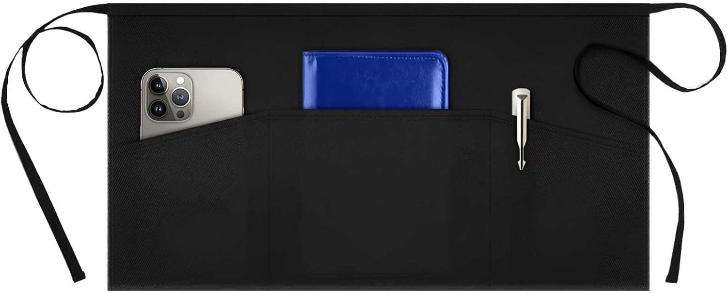 - Ample Storage - Designed with 3 front pockets, provides convenient storage for all your serving essentials. From pens and order pads to utensils and handheld devices, everything you need is within easy reach, allowing you to work efficiently and seamlessly.