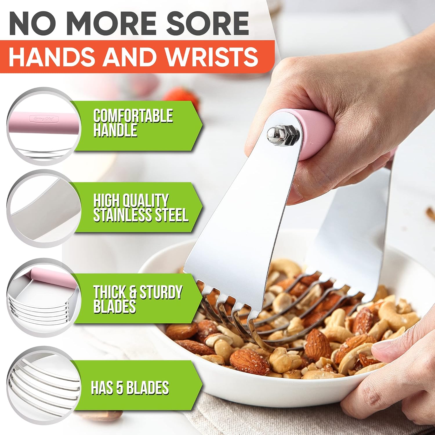 Spring Chef Large Dough Blender For Baking, Professional Dough Cutter Tool, Stainless Steel Puff Pastry Cutter Tool, Dishwasher Safe Pastry Blender for Easy Mixing - Pink Lemonade
