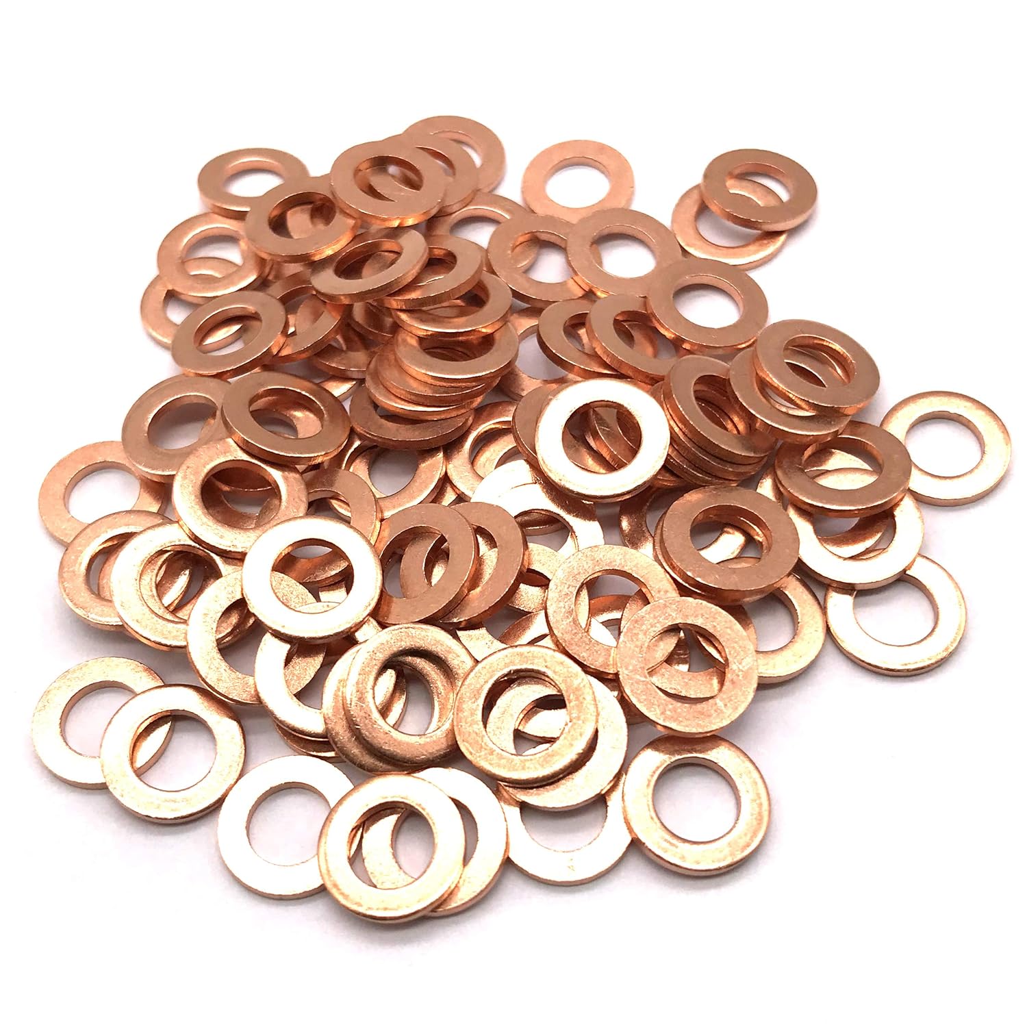 M5 Flat Washer Copper Sealing Ring, 5mm ID 9mm OD 1mm Thickness Metric Sealing Gasket, 100 Pieces
