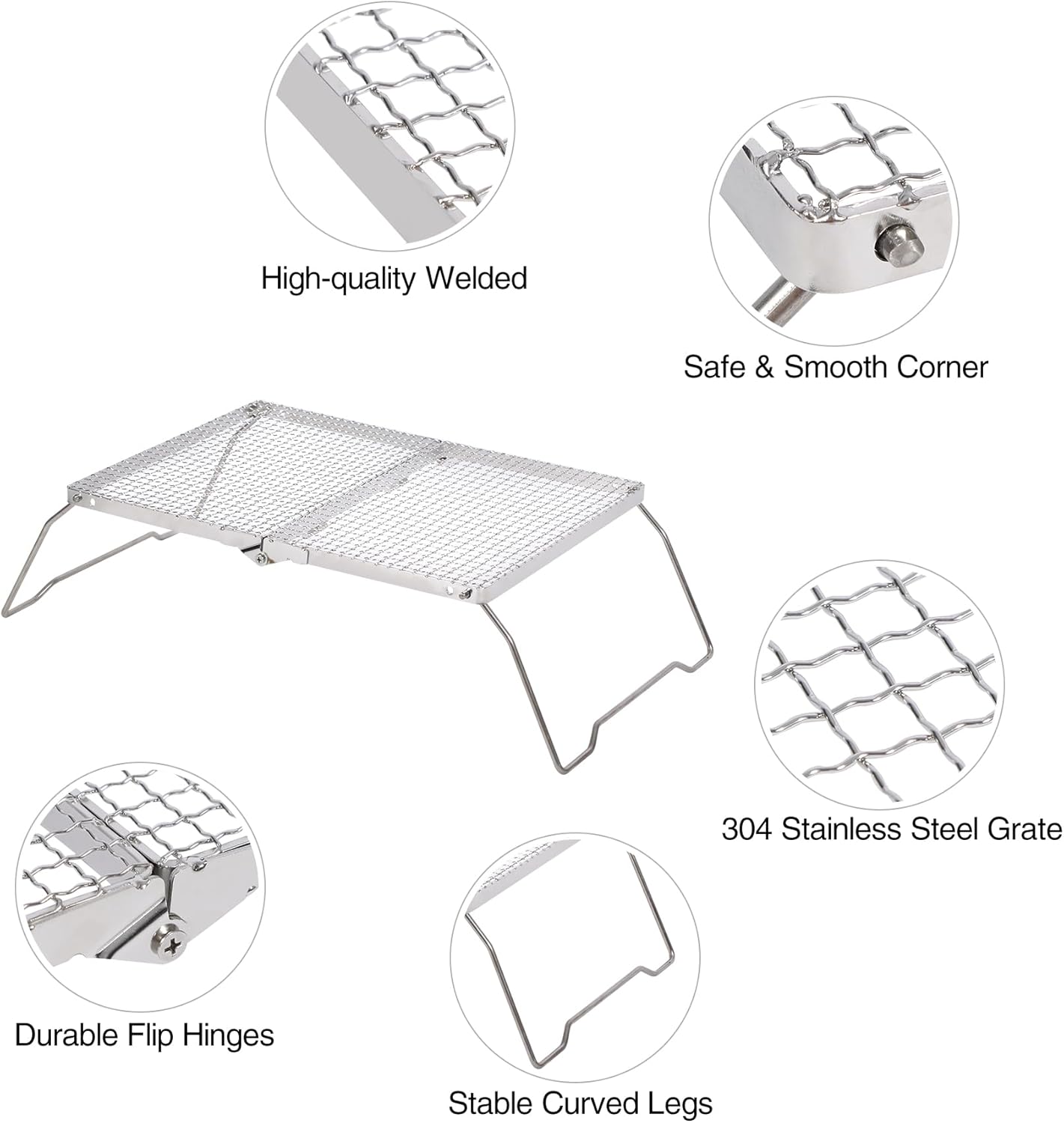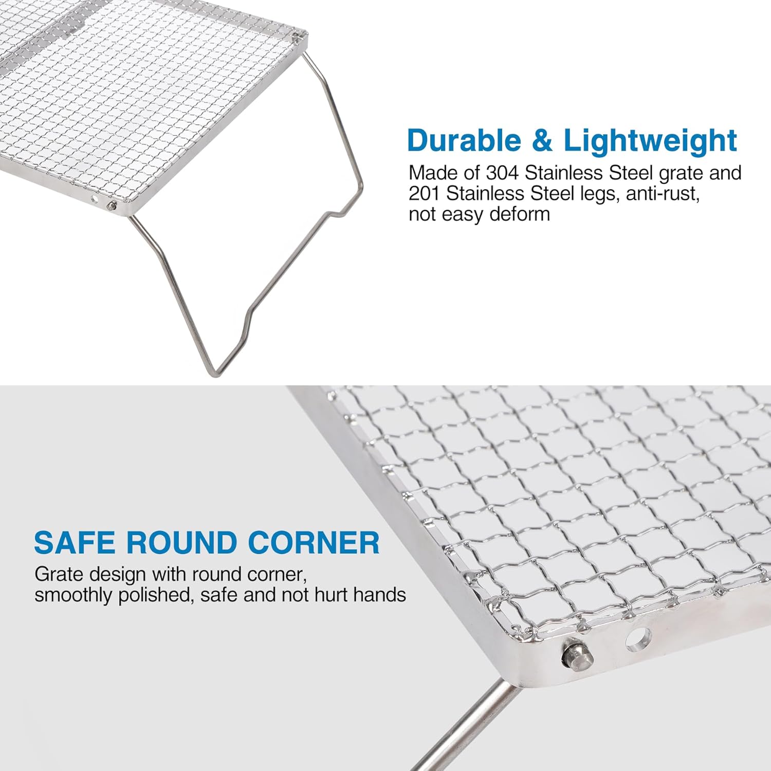 - Heavy-duty Material: The folding campfire grill is made of 304 stainless steel and the legs are made of 201 stainless steel, anti-corrosion and anti-rust, which also makes it lighter and more durable than iron, easy to clean and can be used for long time.