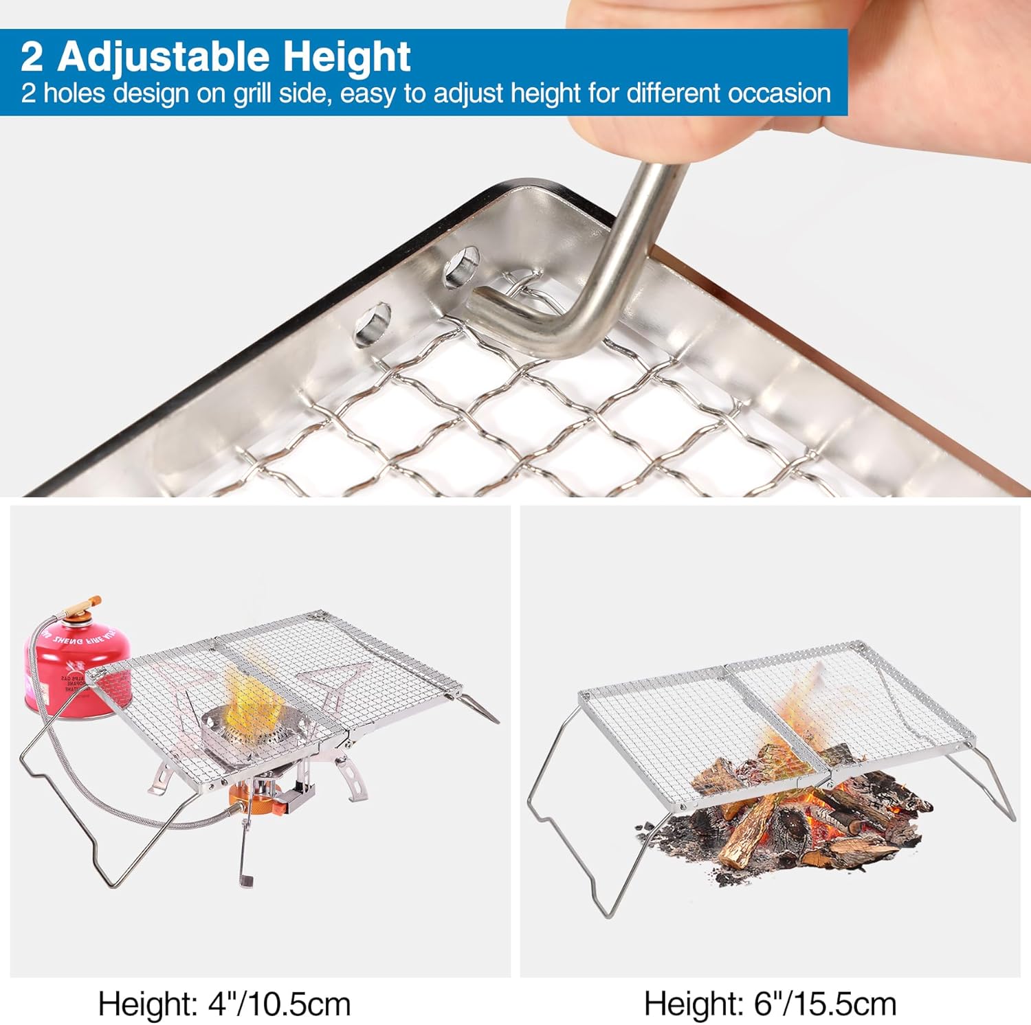 - Multi-Purpose Campfire Grill: The outdoor cooking grill is suitable to use over open fire, charcoal, gas or camping stove. Make delicious outdoor feasts, boil water, and brew coffee over a campfire on top of this freestanding backpack camp grill.