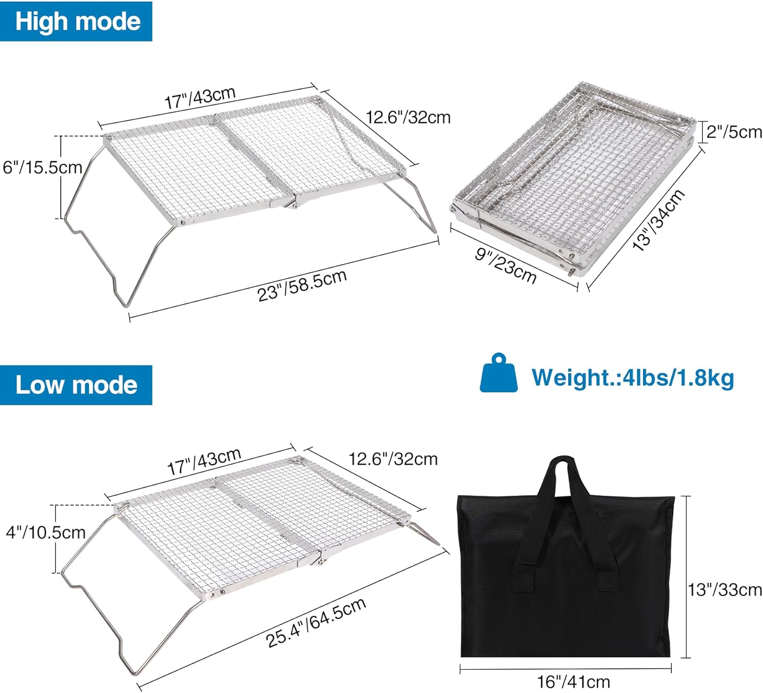 REDCAMP 17" Large Folding Campfire Grill with Mesh, 304 Stainless Steel Grate, Heavy Duty Portable Camping Grill with Carrying Bag for Outdoor Cooking BBQ