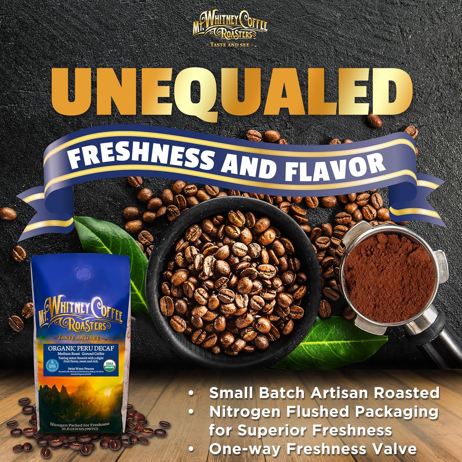 Mt. Whitney Organic Swiss Water, Low Acid, Decaf Coffee from Peru (Ground, 2 Lb)