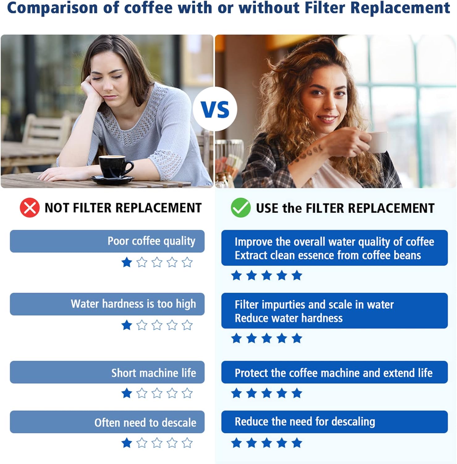 - 【MORE MELLOW AND DELICIOUS COFFEE】Our 4-pack water filter replacement for Breville espresso machine adopts advanced technology using coconut-activated carbon adsorption and ion exchange to reduce chlorine, heavy metals, and other harmful contaminants from the water for optimal flavor extraction from coffee beans