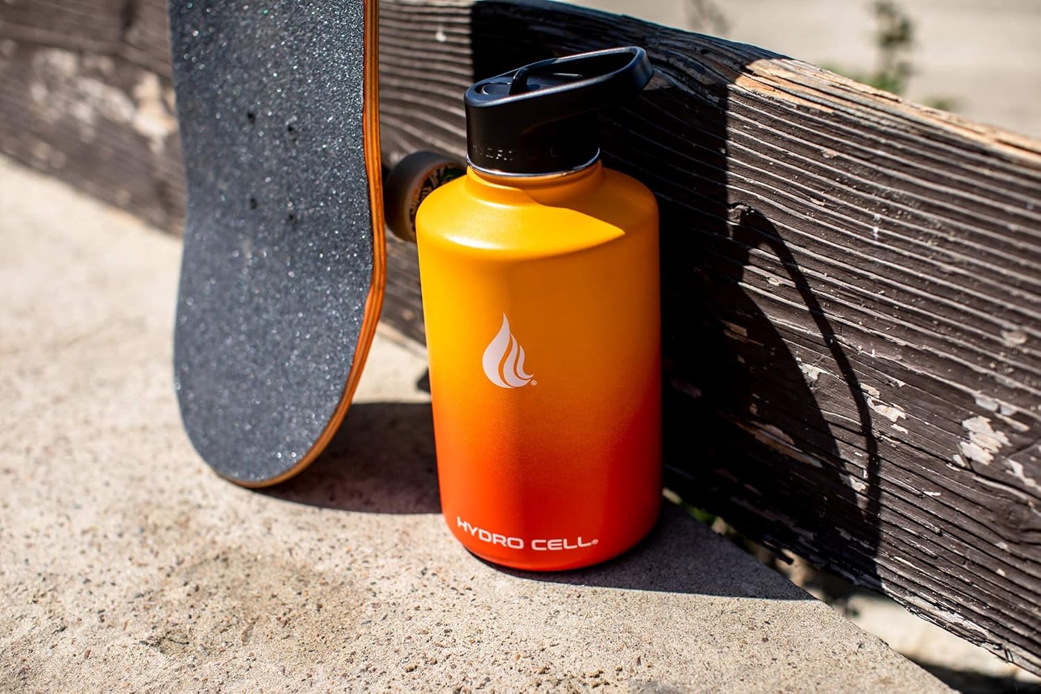 HYDRO CELL Stainless Steel Insulated Water Bottle with Straw - For Cold & Hot Drinks - Metal Vacuum Flask with Screw Cap and Modern Leakproof Sport Thermos for Adults (Red/Orange 64oz)