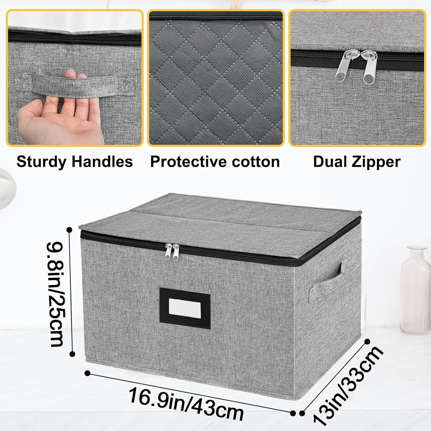 - 🍷 Double top-grade stong zipper - Dinnerware storage organizers equipped with #5 stainless steel zippers which are hard to be broken,top-grade,fasion design,two-way zippers allow it to easily slide along the colsure when in use.