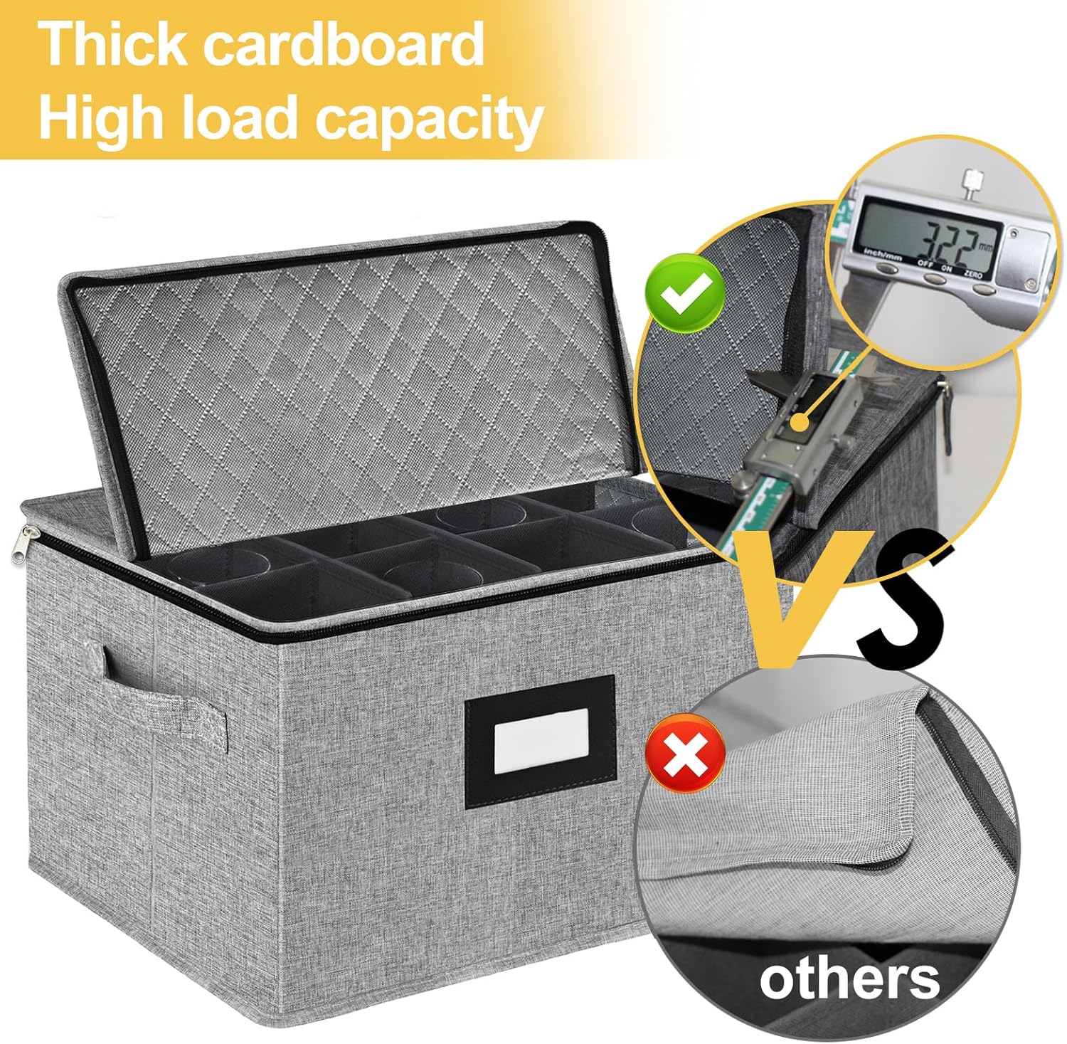 - 🍷 Perfect design - The wine glass includes 12 cells,size 17“x13”x10“ inch.Every china storage box with a label holder to easily identify contents