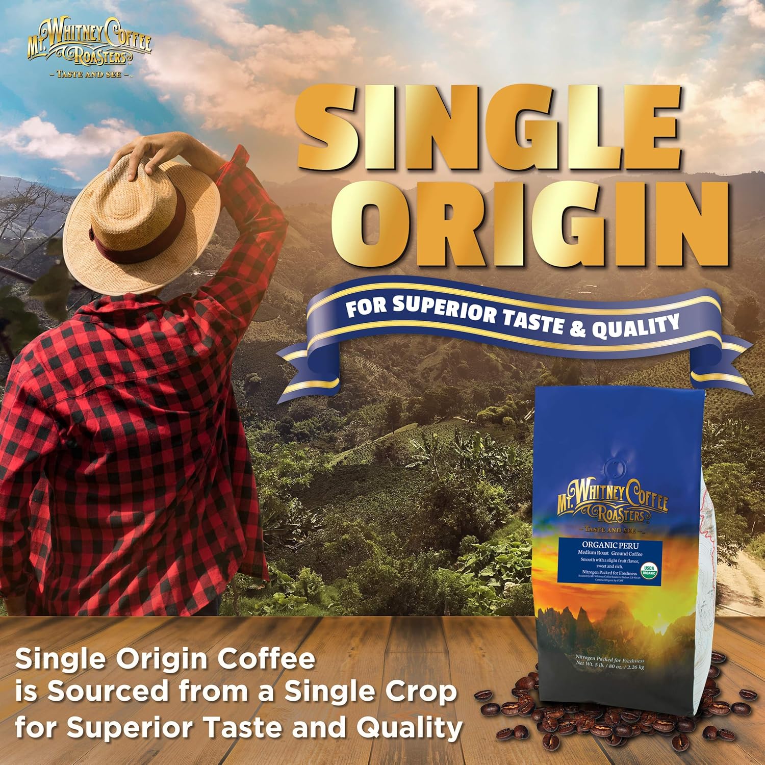 - SINGLE ORIGIN FOR SUPERIOR TASTE & QUALITY - Mt. Whitney’s Organic Peruvian coffee is a single origin coffee, composed of a single crop. Single origin coffees accentuate certain flavor attributes specific to a region, and are of superior taste and quality.