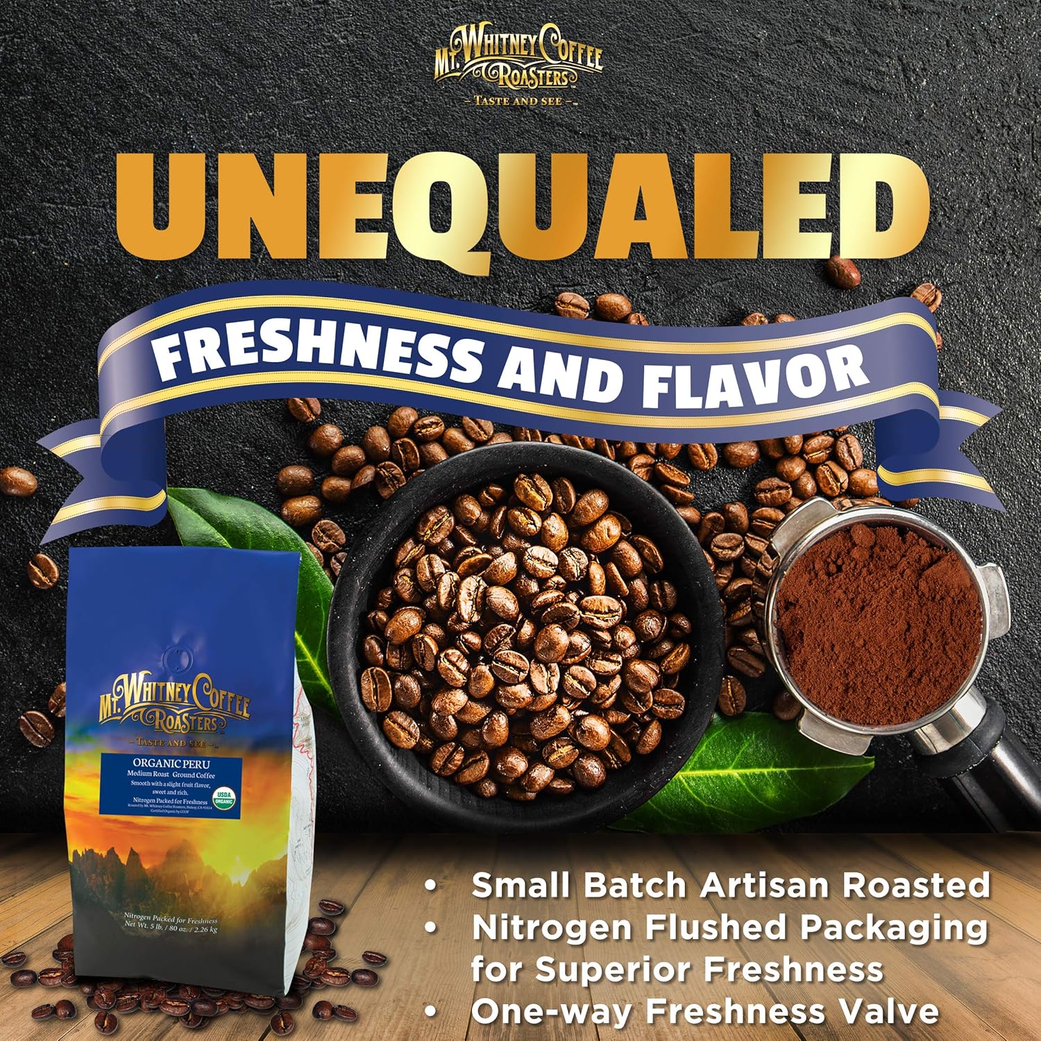 Mt. Whitney Organic Shade Grown, Low Acid Coffee from Peru (Ground, 5 Lb)