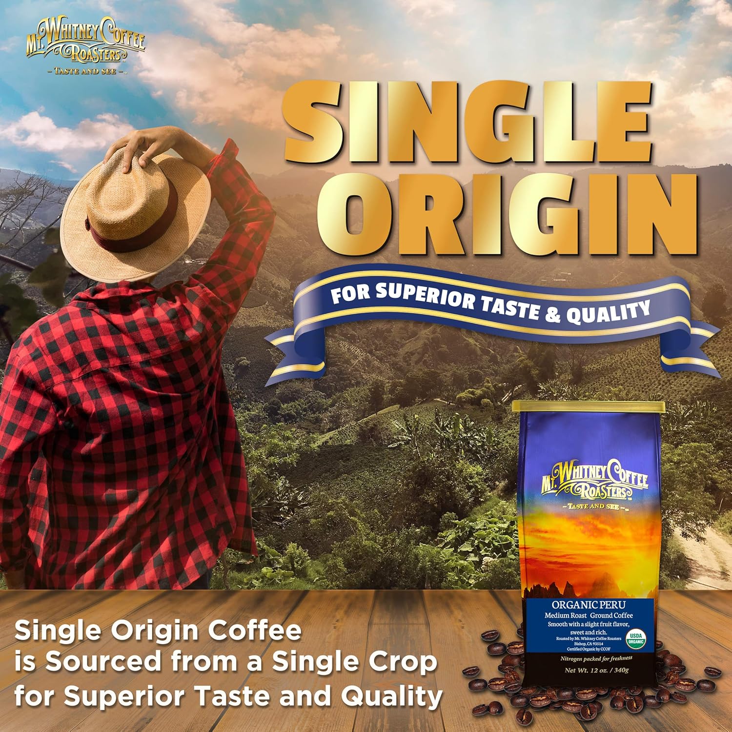 - SINGLE ORIGIN FOR SUPERIOR TASTE & QUALITY - Mt. Whitney’s Organic Peruvian coffee is a single origin coffee, composed of a single crop. Single origin coffees accentuate certain flavor attributes specific to a region, and are of superior taste and quality.