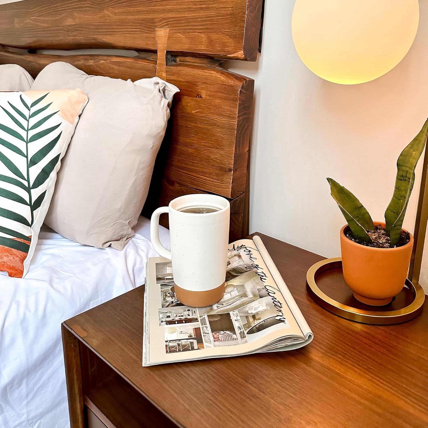 Create a cozy bedroom with neutral bedding, warm lighting, and minimalist styling.Calming tones make the space soft, relaxing, and beautifully timeless.