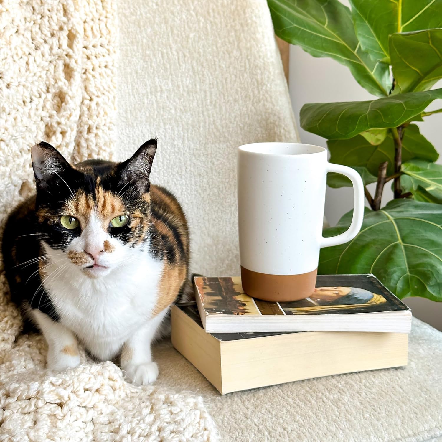 Mora Ceramics Large Tea Mug with Loose Leaf Infuser and Ceramic Lid, 18 oz, Portable, Microwave and Dishwasher Safe, Tall Coffee Cup - Rustic Matte Ceramic Glaze, Modern Herbal Tea Strainer, Cotton