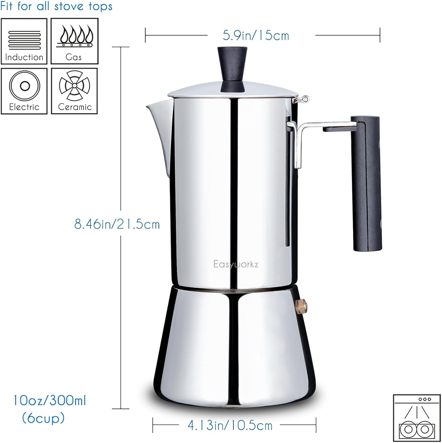 Easyworkz Pedro Stovetop Espresso Maker 6Cup 300ml Stainless Steel Italian Coffee Machine Maker Moka Pot Induction Espresso Pot
