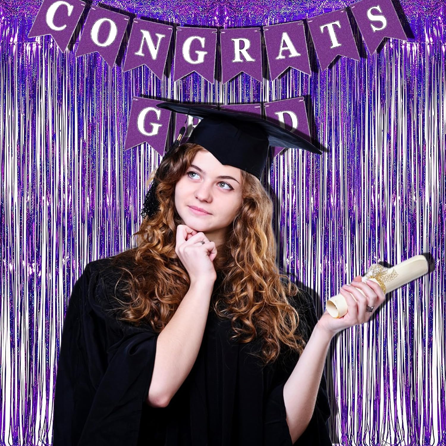 BRAVESHINE Purple Tinsel Foil Fringe Curtains - 2Pcs 3.2x8.2ft Metallic Holidays Photo Backdrop for Halloweens Birthdays Valentine's Bridal Shower Bachelorette Anniversary Engagement Party Supplies