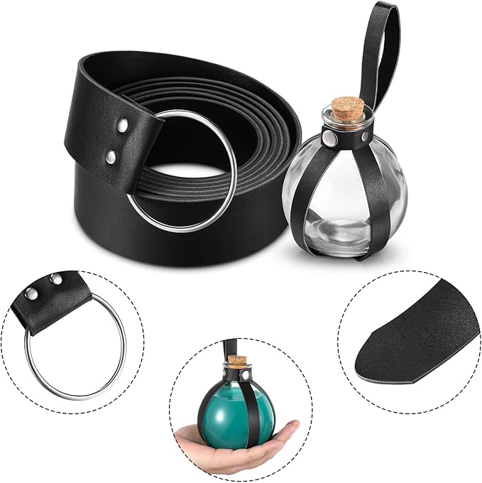 - What you get: package includes 1 piece 200 ml clear glass cork-top spherical ball bottle, equipped with a medieval leather belt, a wonderful combination that will help you add the finishing touch for any witch or wizard costume