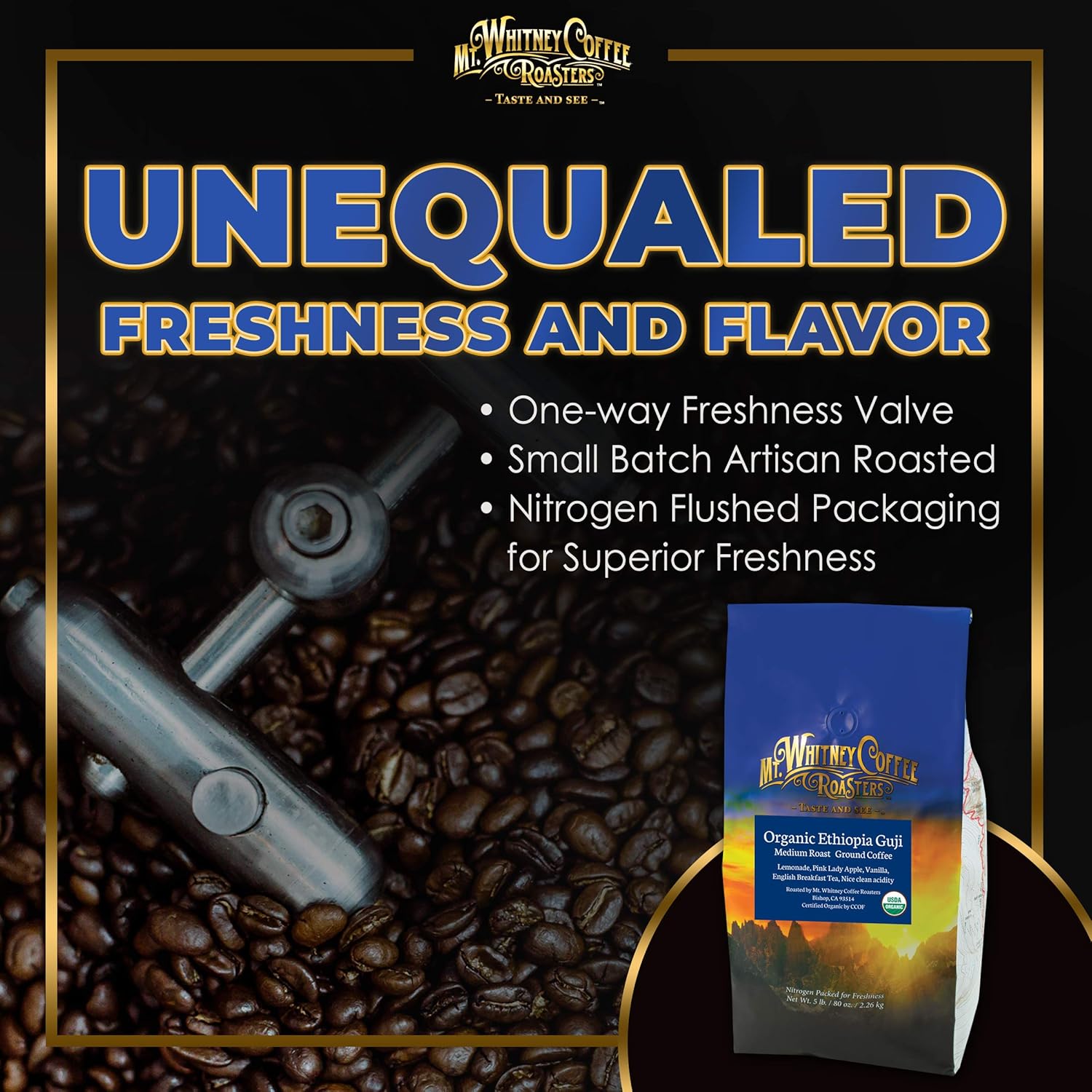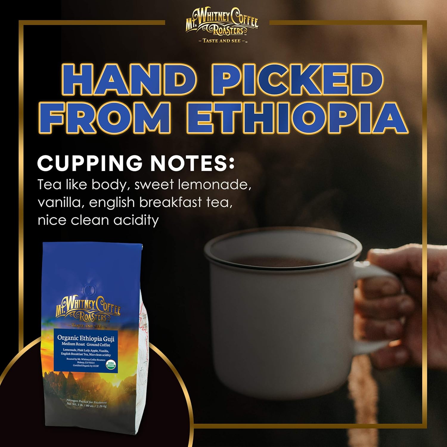 - SINGLE ORIGIN FOR SUPERIOR TASTE & QUALITY - Mt. Whitney’s Organic Ethiopia Guji Coffee is a single-origin coffee, sourced from a single country and single crop. Single-origin coffee accentuates certain flavor attributes specific to a region, and are of superior taste and quality.
