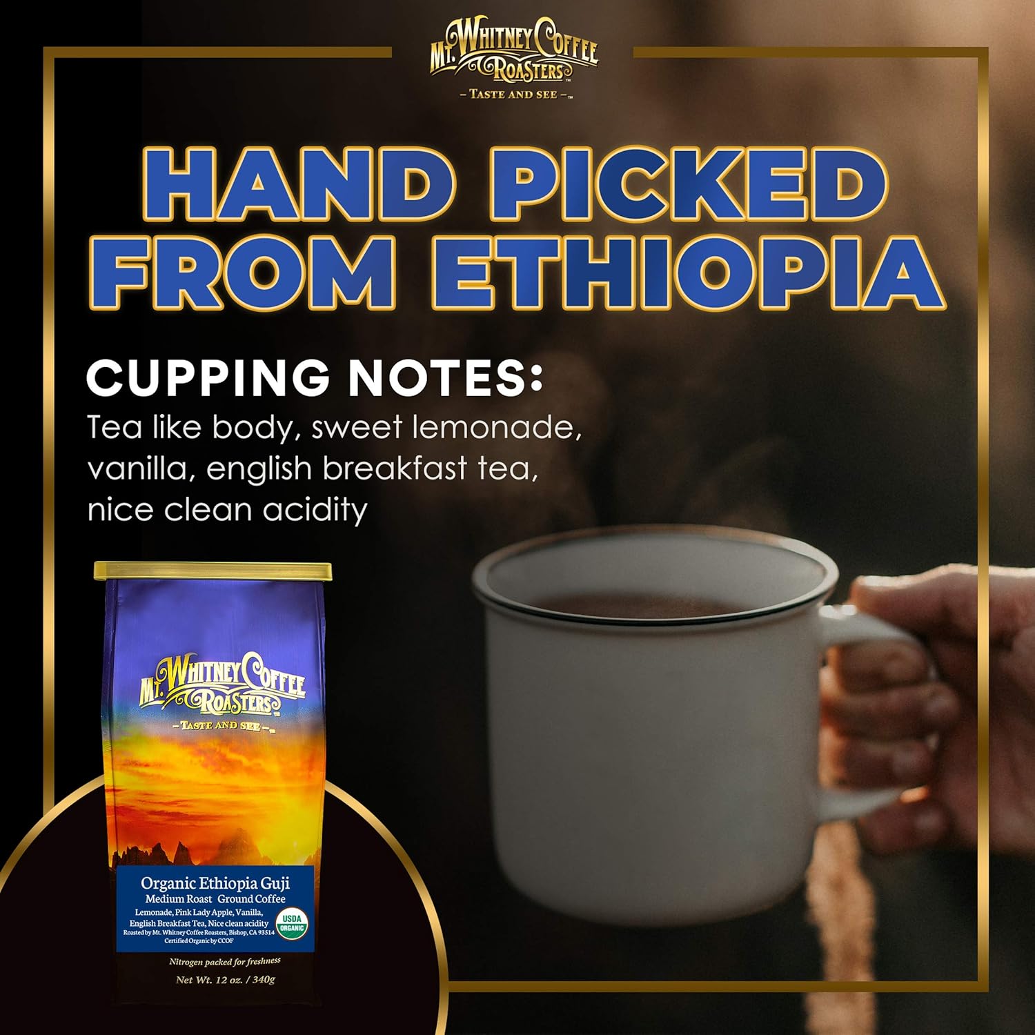 - SINGLE ORIGIN FOR SUPERIOR TASTE & QUALITY - Mt. Whitney’s Organic Ethiopia Guji Coffee is a single-origin coffee, sourced from a single country and single crop. Single-origin coffee accentuates certain flavor attributes specific to a region, and are of superior taste and quality.