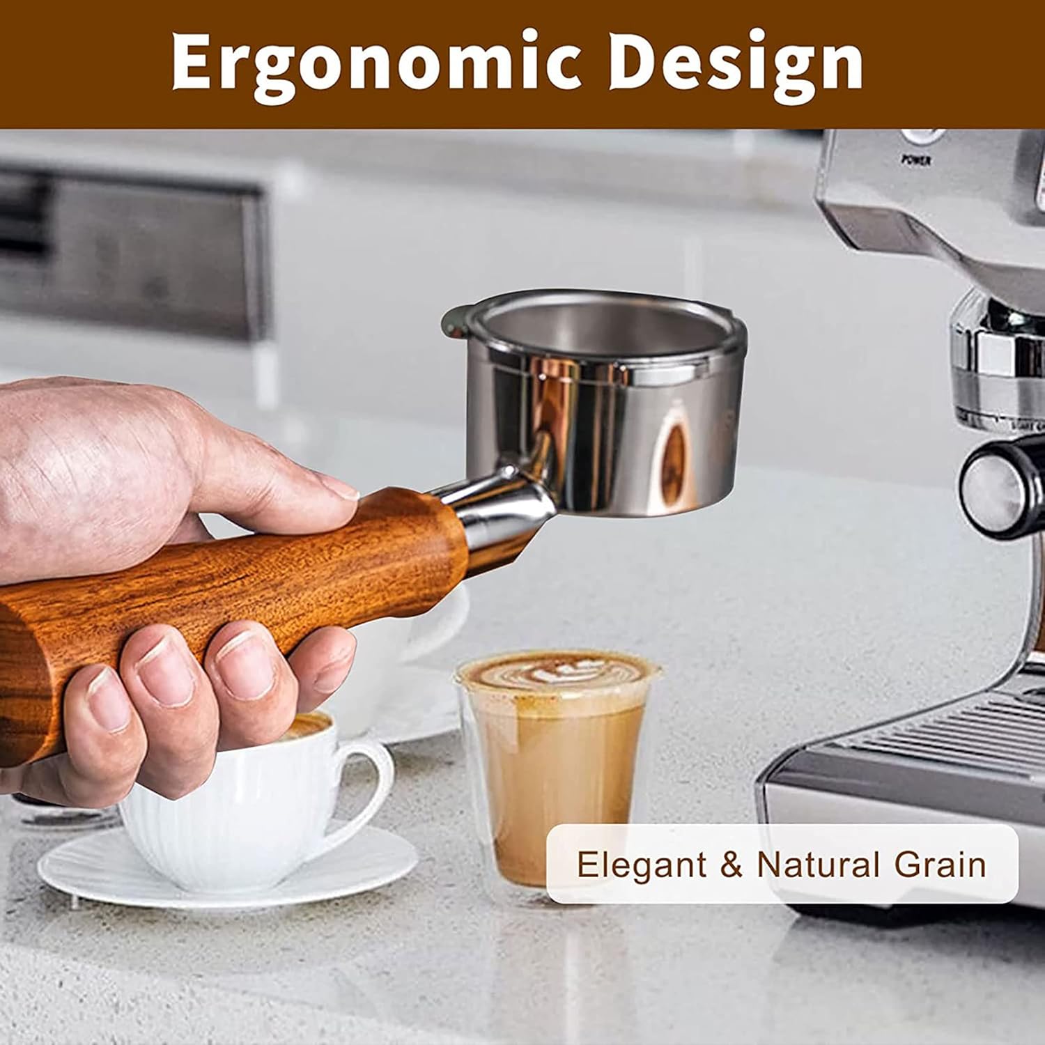 - 【Ergonomics and movable design】 Eitonbu Coffee Bottomless Portafilter solid wood handle in line with ergonomics design can provide comfortable grip and stable operation; it can be disassembled at will as a replacement part of the coffee machine. Easy to use, easy to clean and no dead corner