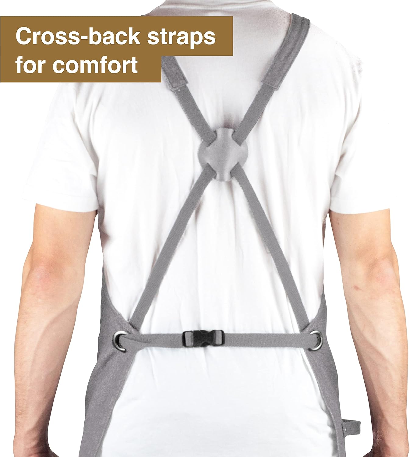 • Multipurpose Protection – Guard yourself against spills in any setting. Your sturdy cooking apron can be worn in kitchens, art studios, garages, and more. Whatever your craft, we’ve got you covered.