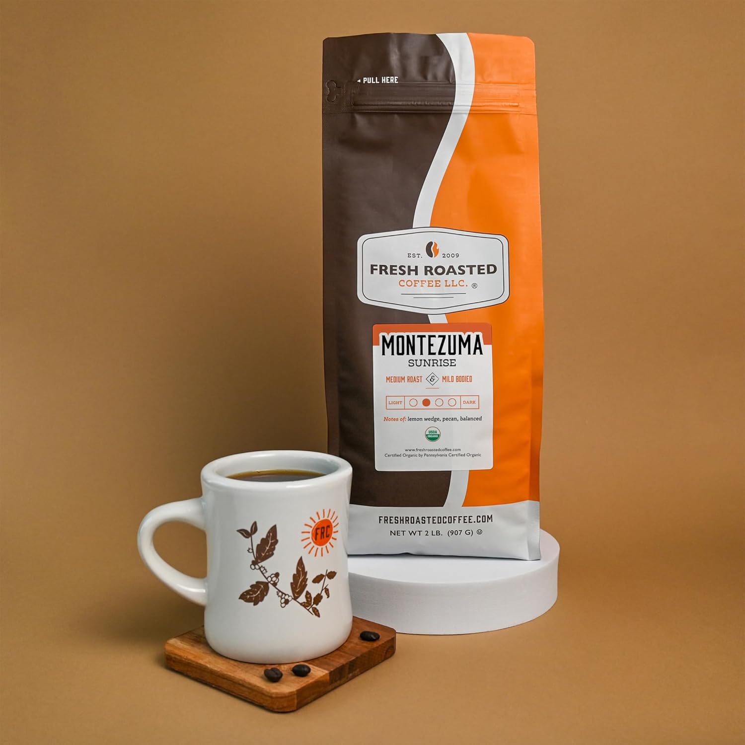 Fresh Roasted Coffee, Organic Montezuma Sunrise| USDA Organic, Kosher | Medium Roast 5 lb (80 oz) Whole Bean