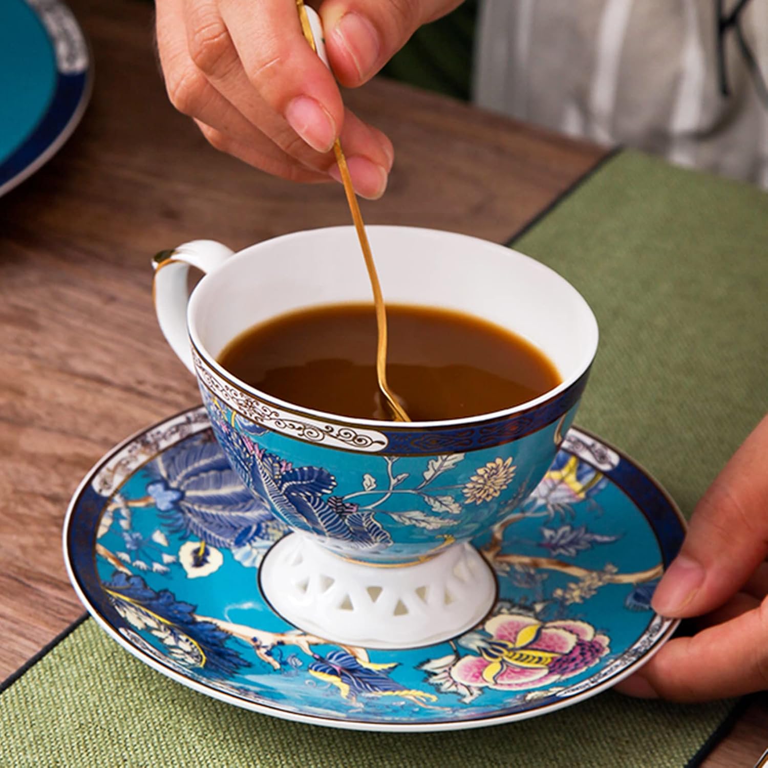 - Exquisite Design: The vivid patterns and the mysterious blue of vintage tea cups and saucers set make you feel like you are in the wonderful nature.The gold traced parts on the bone china tea cups and saucers set for women add to the overall luxury and make it even more charming.