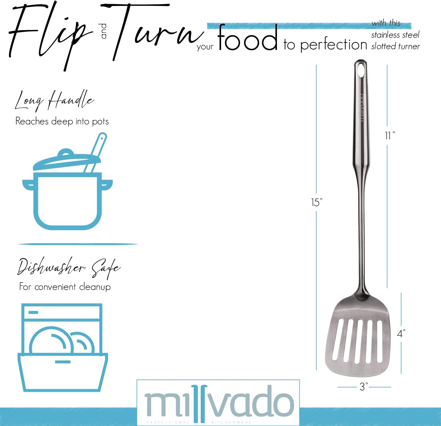 - SLOTTED TURNER: With this slotted turner you can calm those agitated nerves, since the slots will help drain excess oil when frying. You can now enjoy that burger, pancake, or BBQ without all that extra soggy fat. It's the #1 cooking tool!