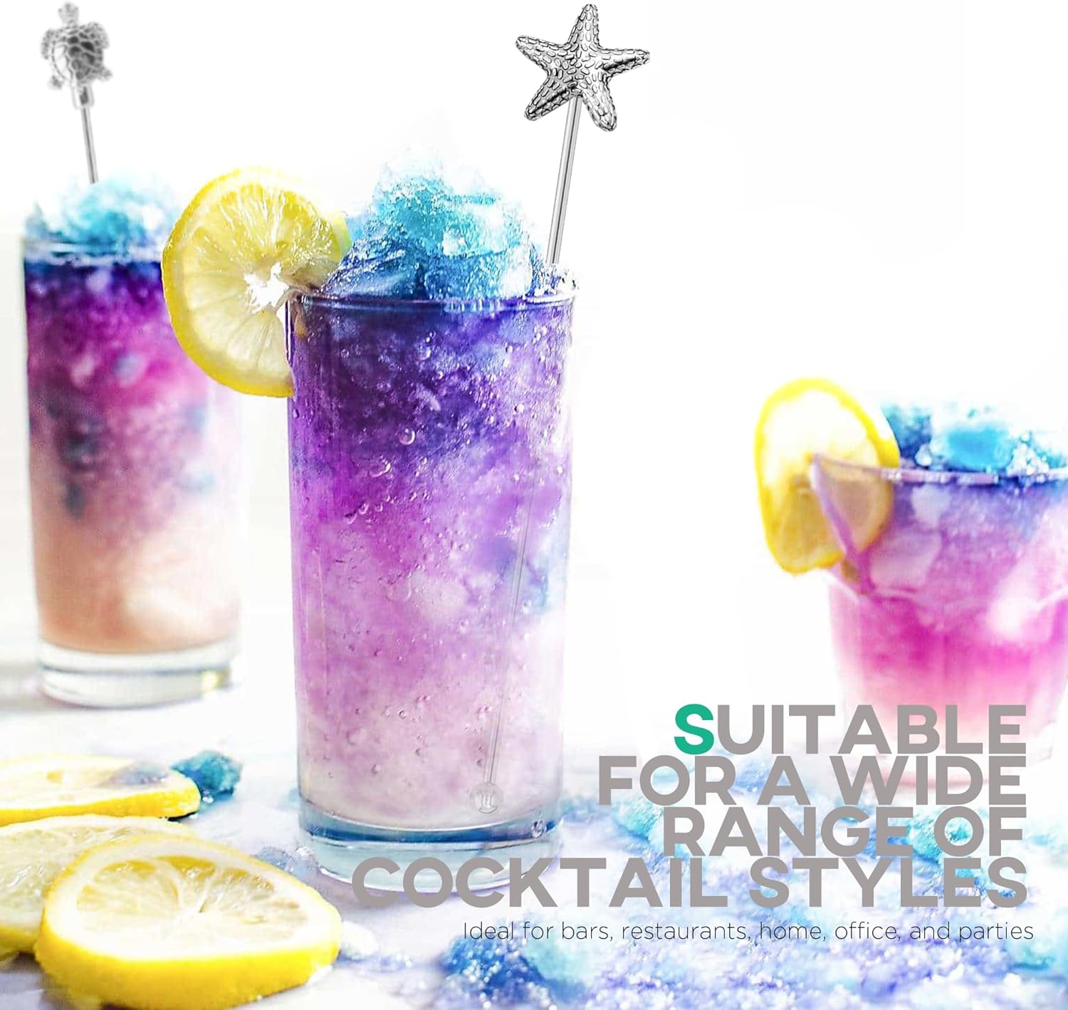 - OPERATION: The stirrer's head is adorned with an ocean animal decoration, not only adds a touch of character to your barware but also serves as a functional handle, making it easy to maneuver and control the rod with precision. The size and weight of this mixing rod are just right, by gently twirling the swizzle stick, you can effectively blend the flavors without disturbing the ice or garnishes.